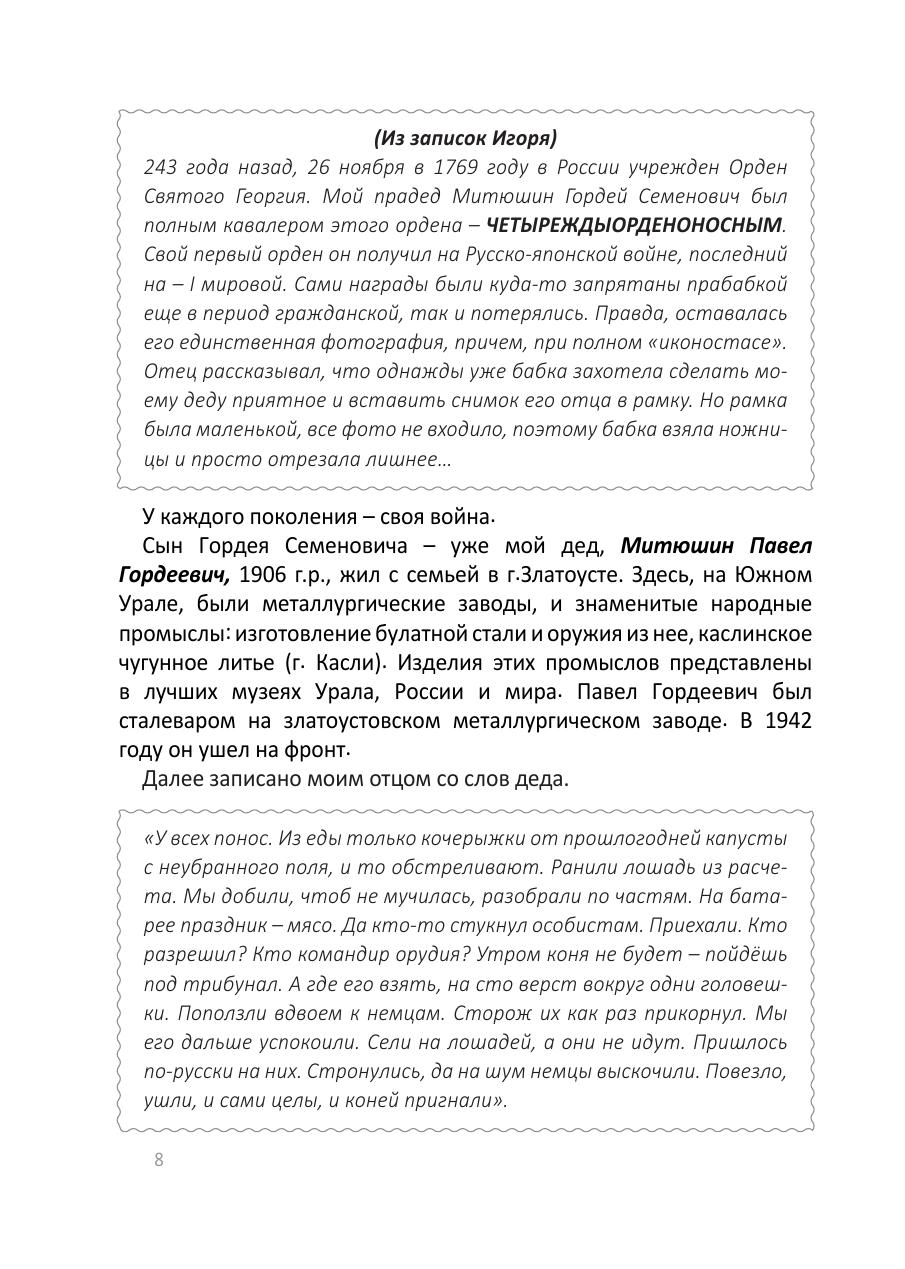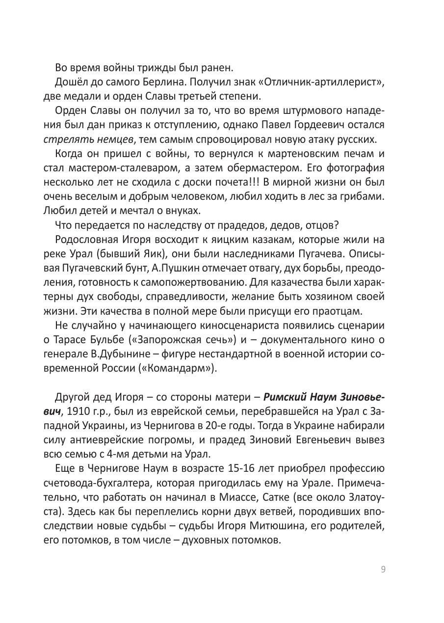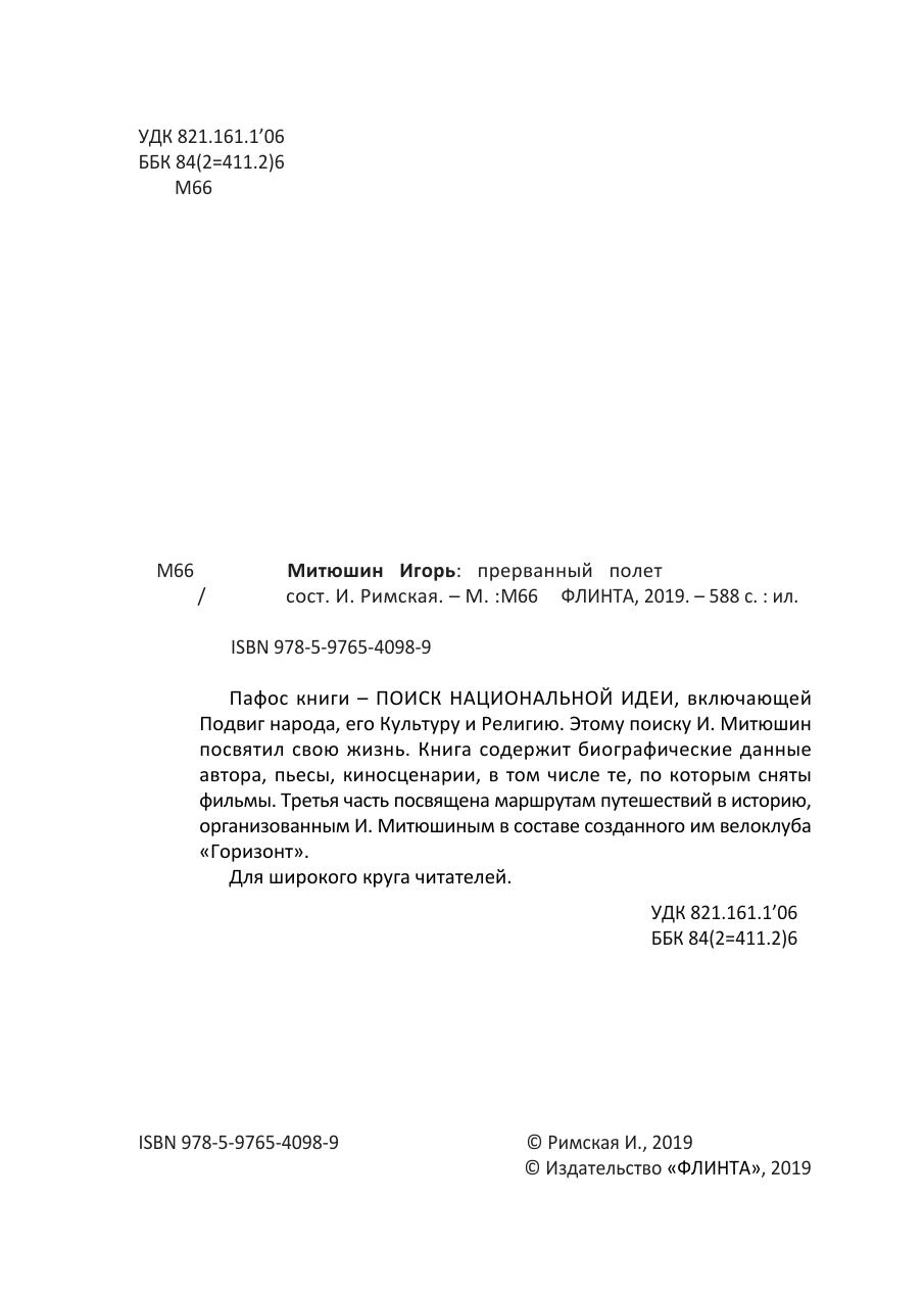 Пафос книги – ПОИСК НАЦИОНАЛЬНОЙ ИДЕИ, включающей Подвиг народа, его Культуру и Религию. Этому поиску И. Митюшин посвятил свою жизнь. Книга содержит биографические данные автора, пьесы, киносценарии, в том числе те, по которым сняты фильмы. Третья часть посвящена маршрутам путешествий в историю, организованным И. Митюшиным в составе созданного им велоклуба «Горизонт».