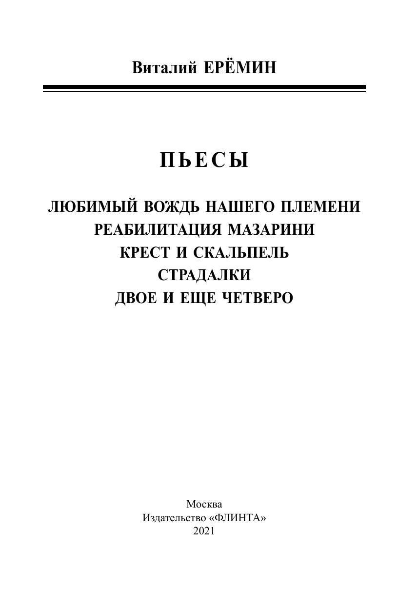 Пьесы: "Любимый вождь нашего племени", "Реабилитация Мазарина", "Крест и скальпель", "Страдалки", "Двое и ещё четверо"
