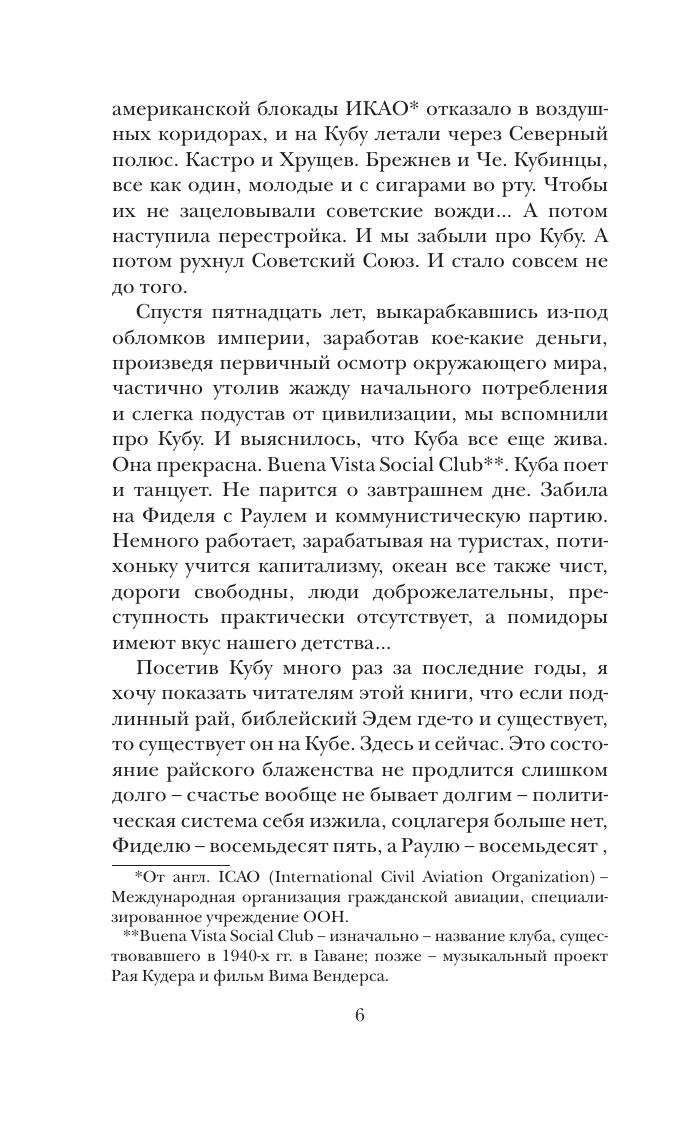 Когда Колумб впервые ступил на землю Кубы, он решил, что очутился в раю. С тех пор в этом смысле на острове ничего не изменилось – Куба и сегодня лучшее в мире место для отдыха. Константин Тублин пишет о Кубе пристрастно, смело, честно – так, как пишут о любимой женщине: где на Кубе самый вкусный мохито и где непременно нужно искупаться. В какой музей нужно идти, а в какой лучше не надо. Где лучше всего потратить деньги и как очаровать кубинских девушек, – на все эти вопросы автор отвечает с мужской прямотой и конкретностью делового человека.