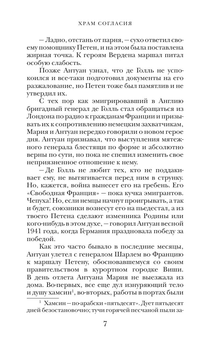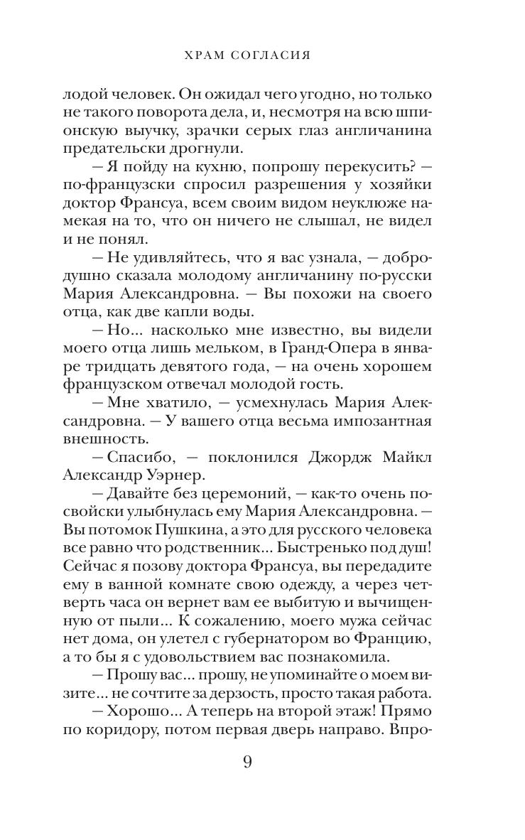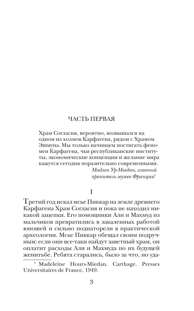 На страницах романа Вацлава Михальского «Храм Согласия» (ранее вышли – «Весна в Карфагене», «Одинокому везде пустыня», «Для радости нужны двое») продолжается повествование о судьбах главных героинь романа — Марии и Александры, дочерей адмирала Российского Императорского флота, в которых соединились пути России и Туниса, русских, арабов, французов. В романе «Храм Согласия» есть и новизна материала, и сильная интрига, и живые, яркие характеры, и описание неизвестных широкой публике исторических событий XX века.