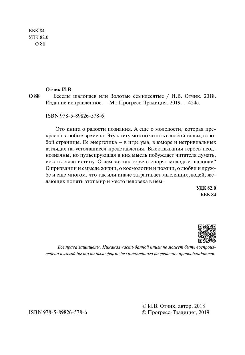 Это книга о радости познания. А еще о молодости, которая прекрасна в любые времена. Эту книгу можно читать с любой главы, с любой страницы. Ее энергетика – в игре ума, в юморе и нетривиальных взглядах на устоявшиеся представления. Высказывания героев неоднозначны, но пульсирующая в них мысль побуждает читателя думать, искать свою истину. О чем же так горячо спорят молодые шалопаи? О призвании и смысле жизни, о космологии и поэзии, о любви и дружбе и еще многом, что так или иначе затрагивает мыслящих людей, желающих понять этот мир и место человека в нем.