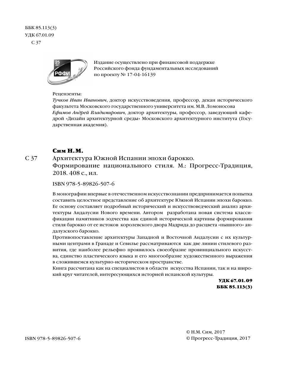 В монографии впервые в отечественном искусствознании предпринимается попытка составить целостное представление об архитектуре Южной Испании эпохи барокко.