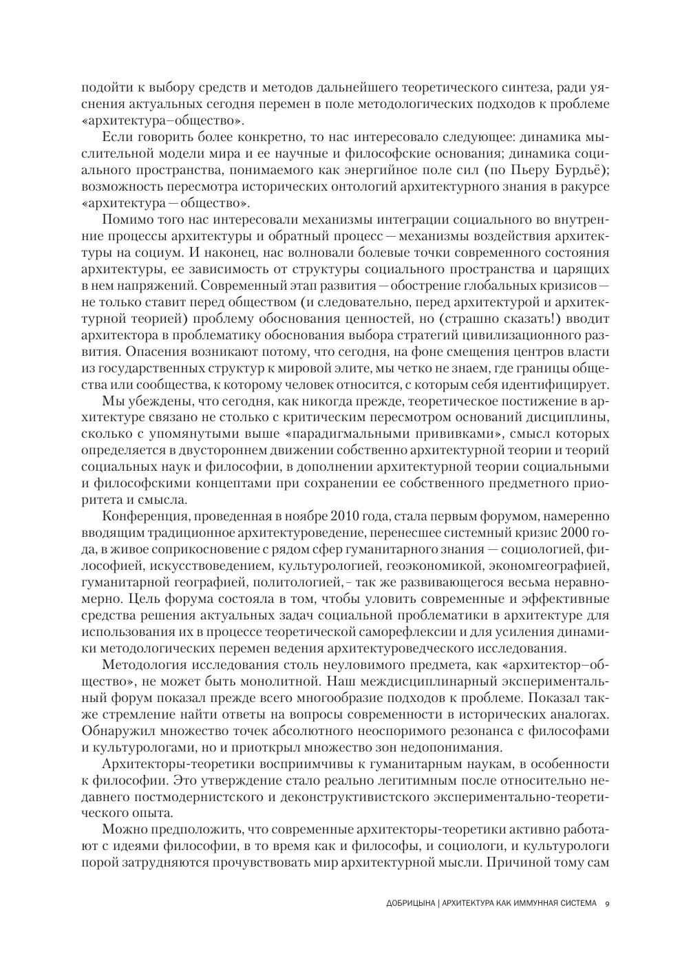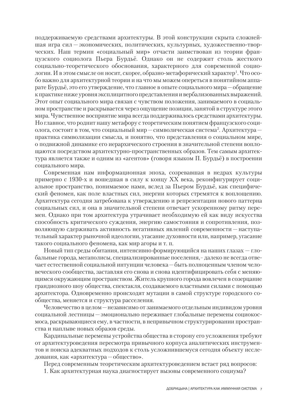 Проект направлен на раскрытие сложной взаимосвязи социального мира и художественной практики архитектуры. В контексте проекта социальный мир понимается как символическая конструкция, отражающая сложнейшую игру сил – экономических, политических, культурных, художественно-творческих. Такого рода конструкция в значительной степени поддерживается средствами архитектуры, способной внушить чувство сопричастности индивидуума обществу. Проект носит междисциплинарный характер: дискурс архитектуры – теоретический, критический, исторический – столкнут с дискурсом философии, культурологии, гуманитарной географии, социологии.