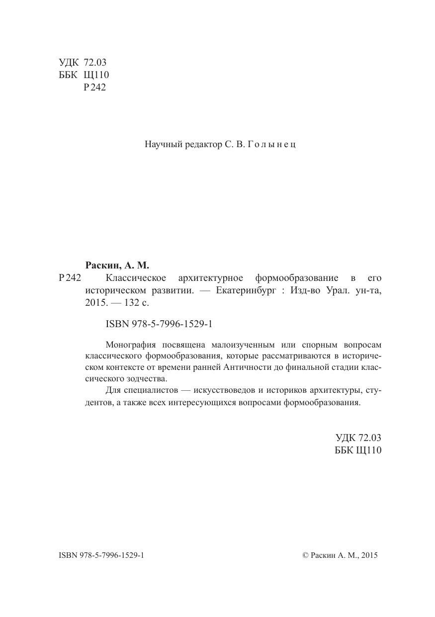 Монография посвящена малоизученным или спорным вопросам классического формообразования, которые рассматриваются в историческом контексте от времени ранней Античности до финальной стадии классического зодчества. Для специалистов — искусствоведов и историков архитектуры, студентов, а также всех интересующихся вопросами формообразования.