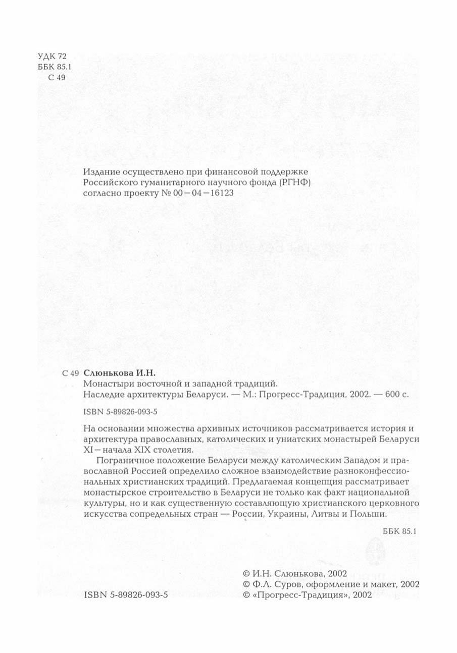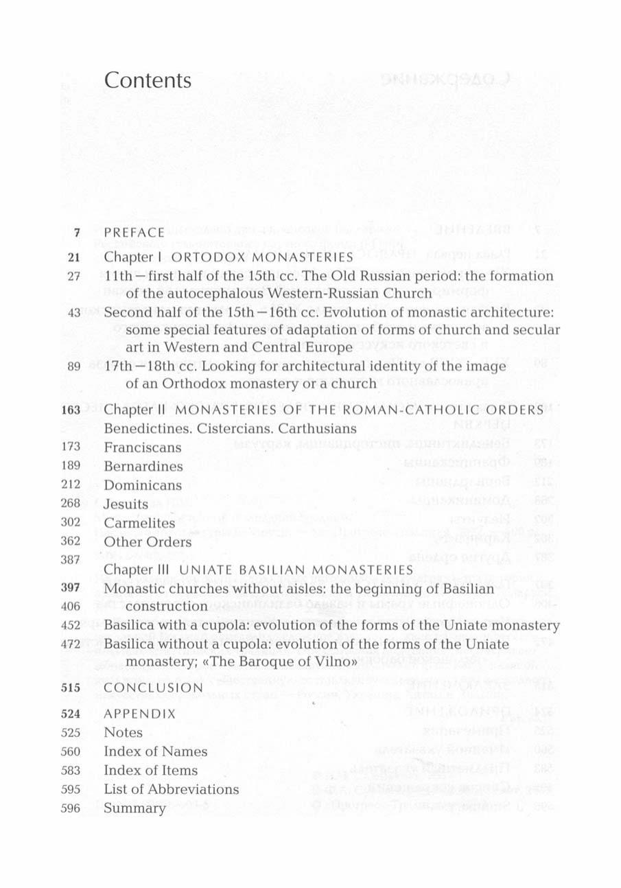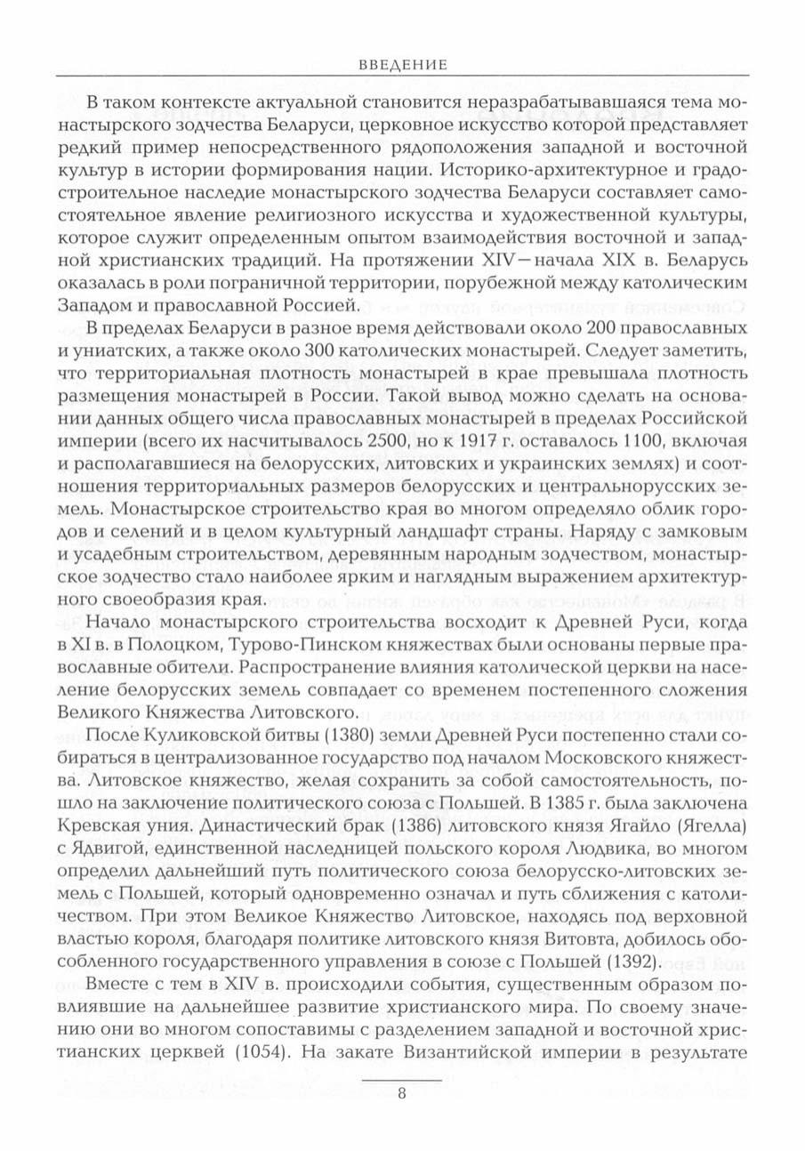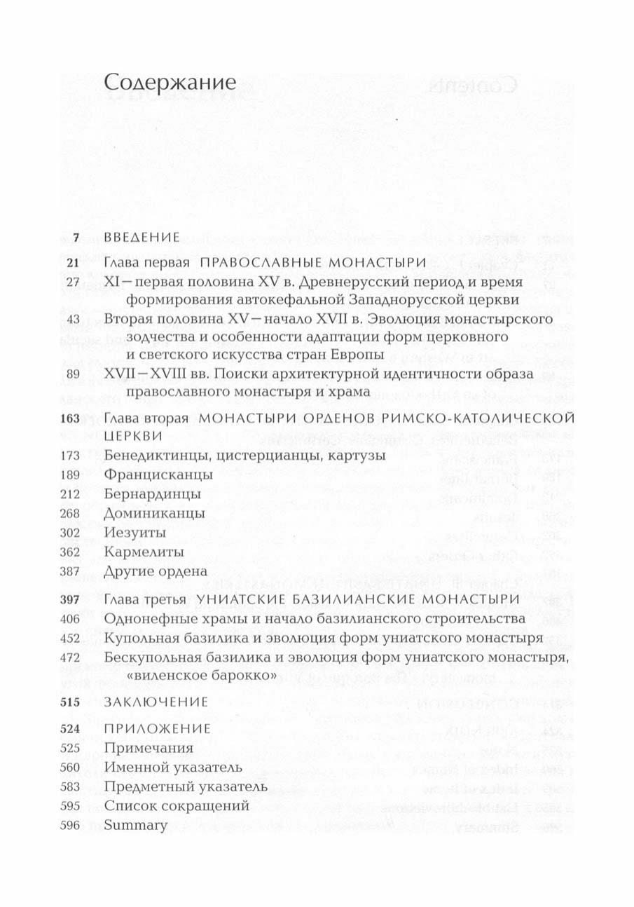 На основании множества архивных источников рассматривается история и архитектура православных, католических и униатских монастырей Беларуси XI — начала XIX столетия.
