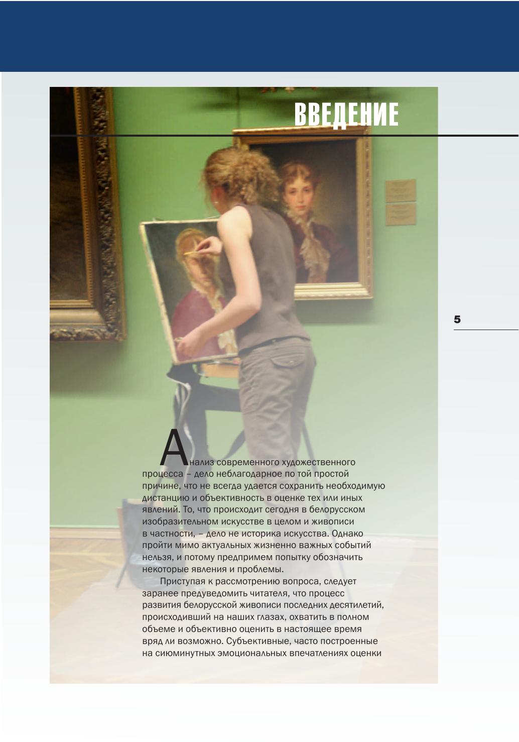 Монография посвящена актуальным вопросам развития живописи Беларуси на рубеже ХХ–ХХI веков. В работе охвачены основные аспекты проблематики, связанные с особенностями развития станковой живописи Беларуси и творчеством художников. Основное внимание уделено анализу тенденций, получивших развитие в этом виде изобразительного искусства. Для специалистов и широкого круга читателей, интересующихся изобразительным искусством.