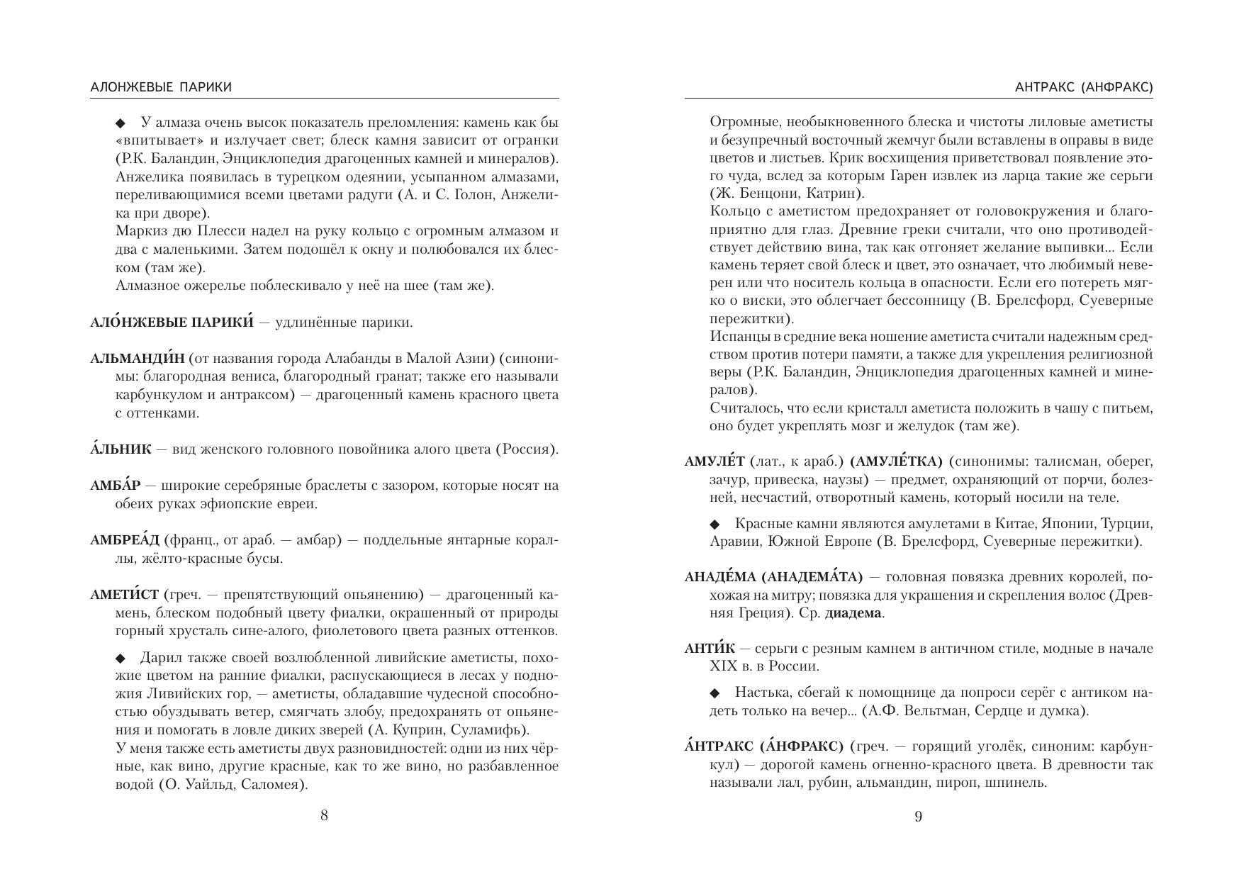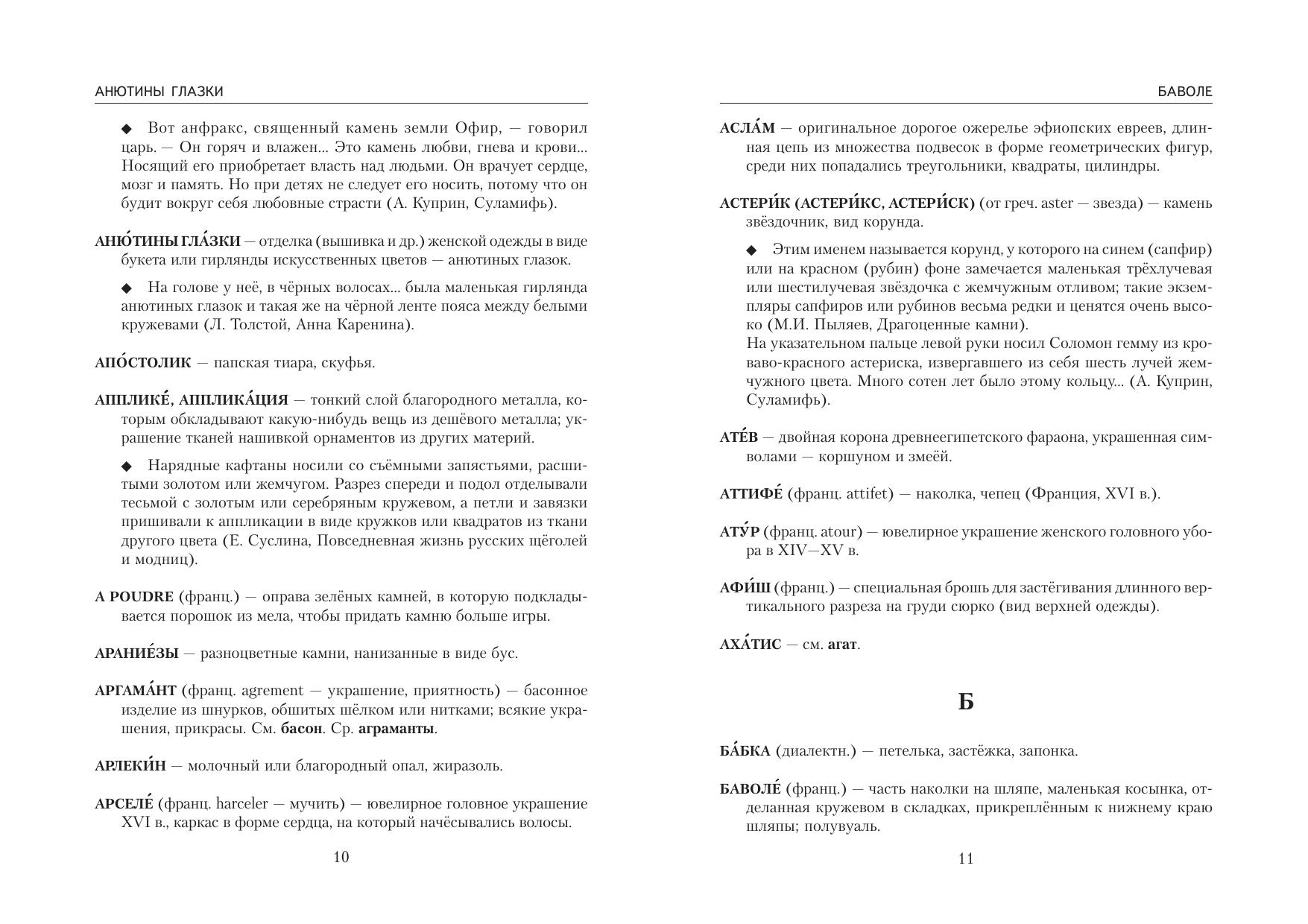 В словаре содержится более 800 словарных статей, кратко описывающих различные нательные украшения и декоративные элементы одежды. Во многих словарных статьях приводятся иллюстрации из художественной, этнографической и другой литературы. Для специалистов и всех интересующихся данной тематикой.
