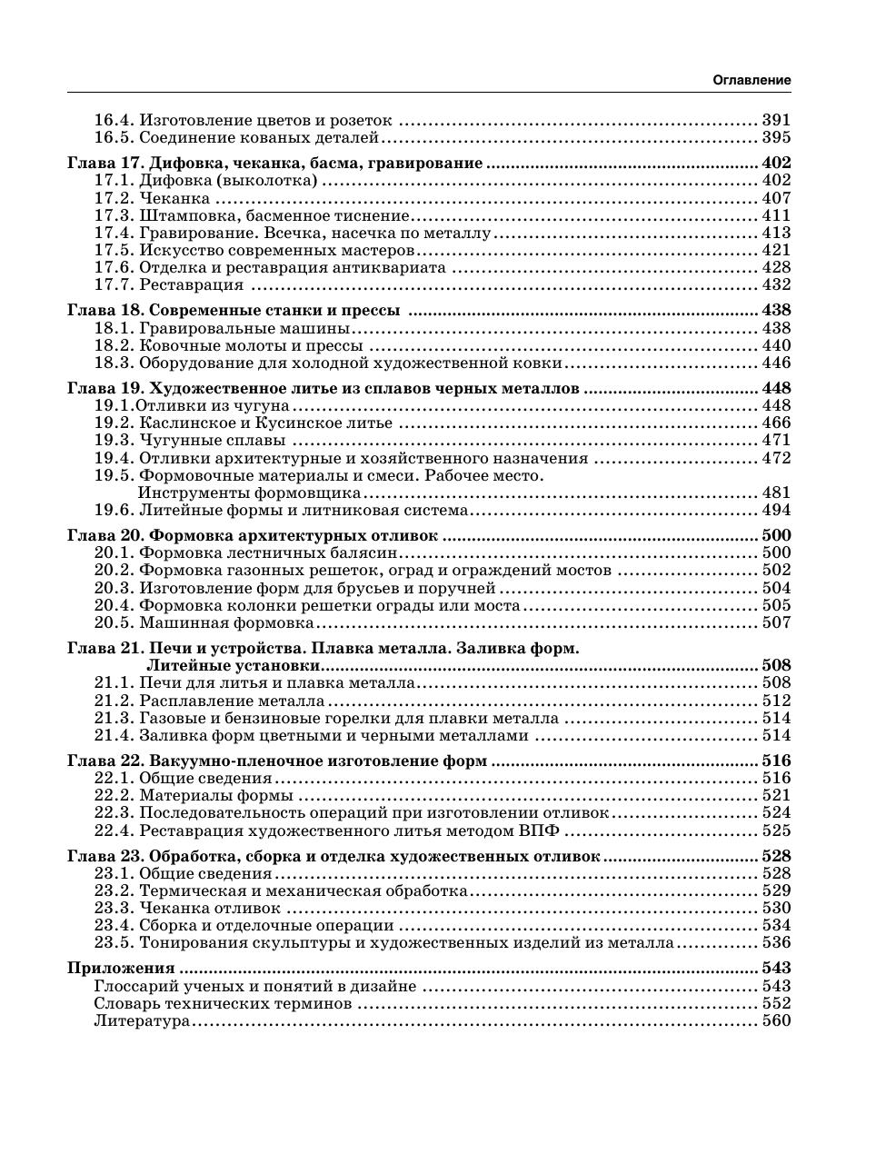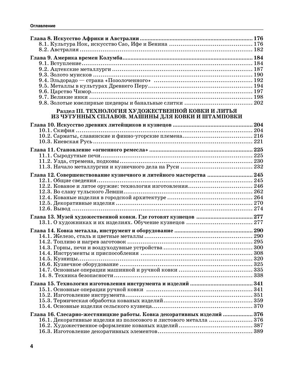 Главное внимание уделено теоретическим и практическим советам по изготовлению отливок из сплавов черных и цветных металлов. Дан исторический обзор методов плавки и литья изделий из сплавов: меди, бронзы, золота и серебра; железа, стали и чугуна. Описаны способы получения ковкой инструментов и художественных изделий, а также способы создания на литых и кованых изделиях защитно-декоративных покрытий. Рассмотрены основные и вспомогательные материалы, современное оборудование для изготовления художественных изделий; рациональные технологии формовки литья; пути повышения качества литых изделий из чугуна; рассмотрены причины возникновения брака при литье