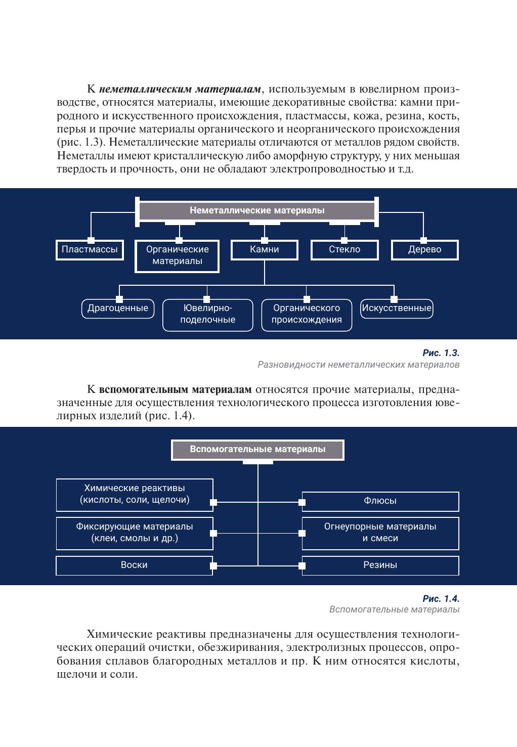 Разделы учебника составлены в соответствии с маршрутной технологией производства ювелирных украшений и изложены в следующем порядке: вопросы металлургии драгоценных металлов и сплавов, описание методов изготовления металлической основы ювелирных украшений и способов декоративной обработки, разновидности оправ ювелирных камней и способов их закрепки. Приведен перечень декоративных неметаллических материалов, применяемых в ювелирных изделиях и методов их художественной обработки. Дана технология машинного производства ювелирных изделий. Изложены общие принципы проектирования и организации ювелирного производства. Для студентов учреждений высшего образования по специальности «Технология и оборудование ювелирного производства». Может быть полезен работникам ювелирной отрасли и всем, кто интересуется ювелирным делом.