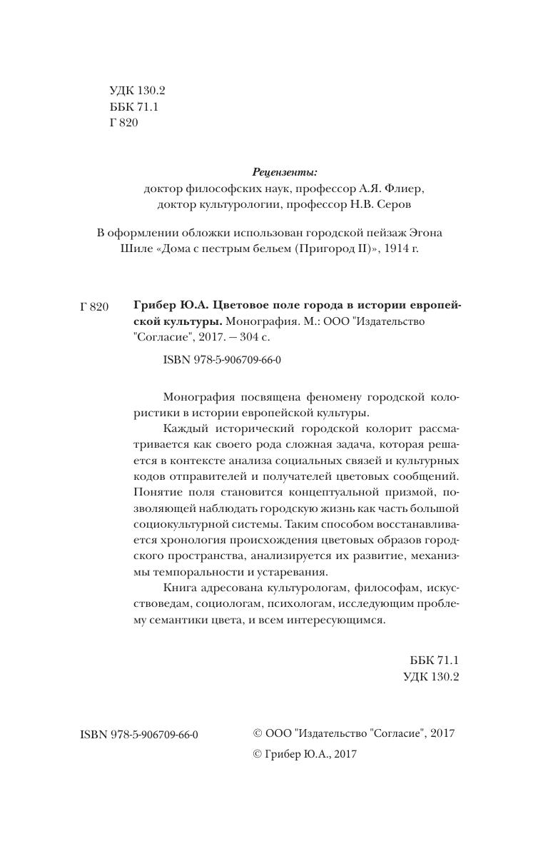 Монография посвящена феномену городской колористики в истории европейской культуры. Каждый исторический городской колорит рассматривается как своего рода сложная задача, которая решается в контексте анализа социальных связей и культурных кодов отправителей и получателей цветовых сообщений.