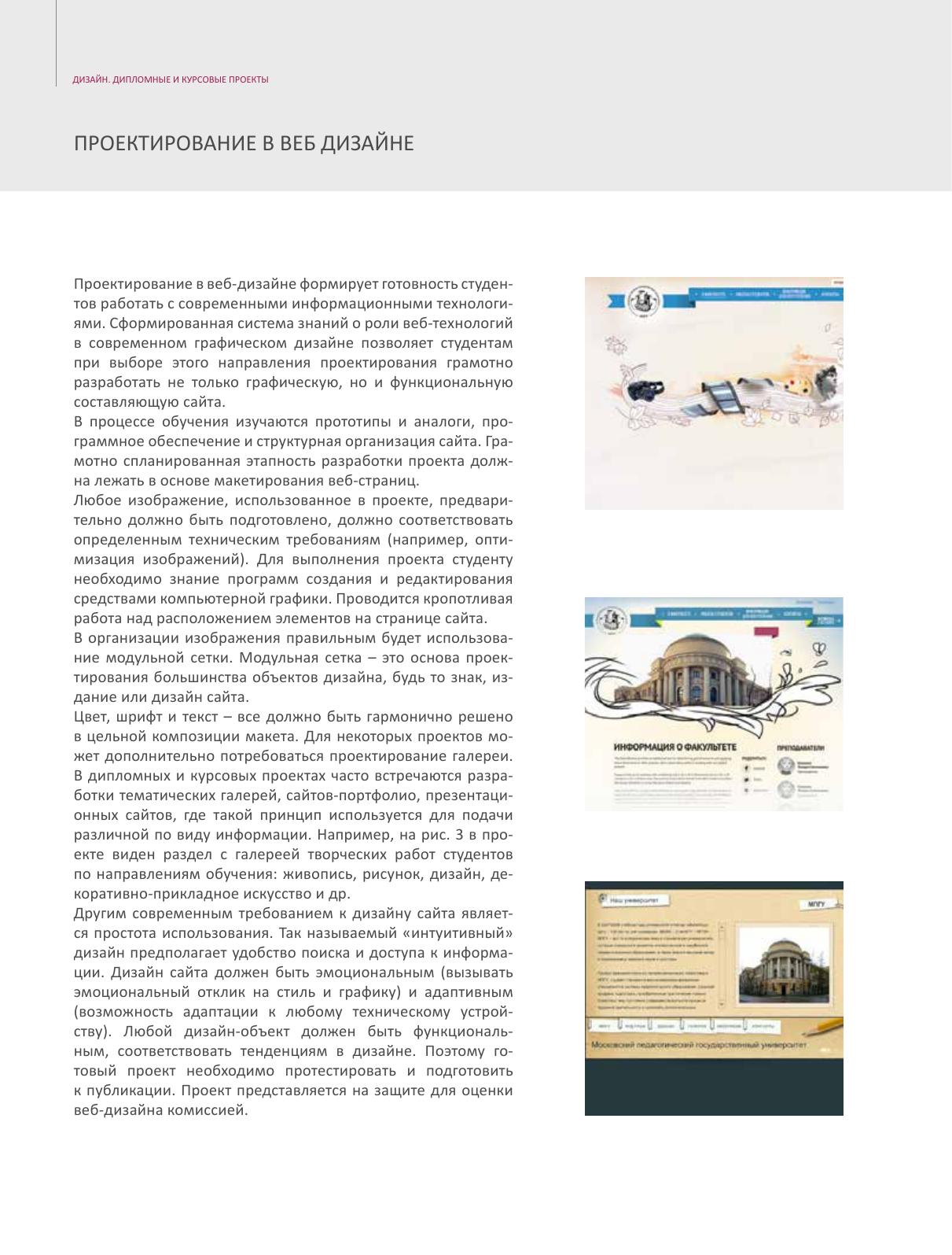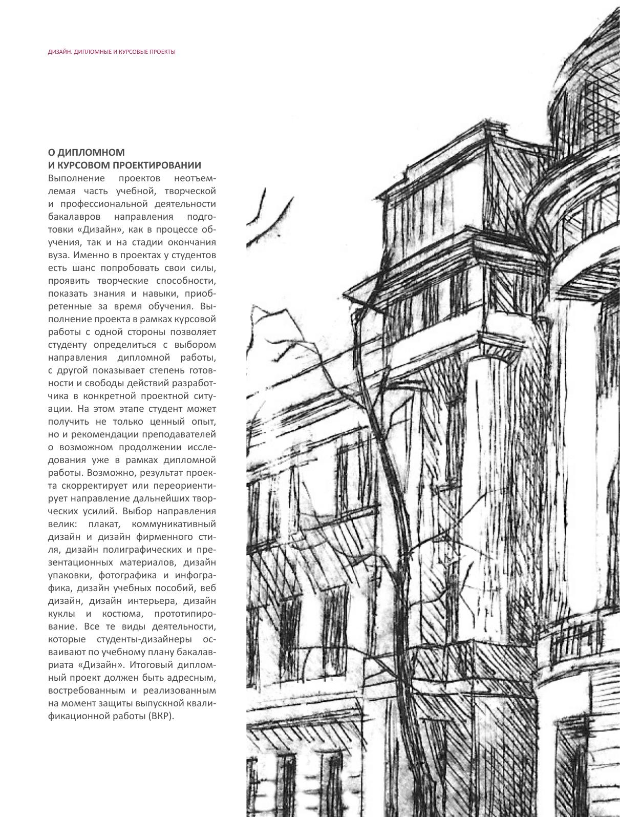 В учебном пособии изложен материал по выполнению дипломных и курсовых проектов по дизайну для бакалавров высших художественных учебных заведений. Рассмотрены такие дизайн-направления как: плакат, коммуникативный дизайн и дизайн фирменного стиля, дизайн полиграфических и презентационных материалов, дизайн упаковки, фотографика и инфографика, дизайн учебных пособий, веб-дизайн, дизайн интерьера, дизайн куклы и костюма, прототипирование. Каждый раздел содержит подробный иллюстративный материал. Пособие соответствует требованиям ФГОС ВО по направлению подготовки 54.03.01 Дизайн (уровень бакалавриата).