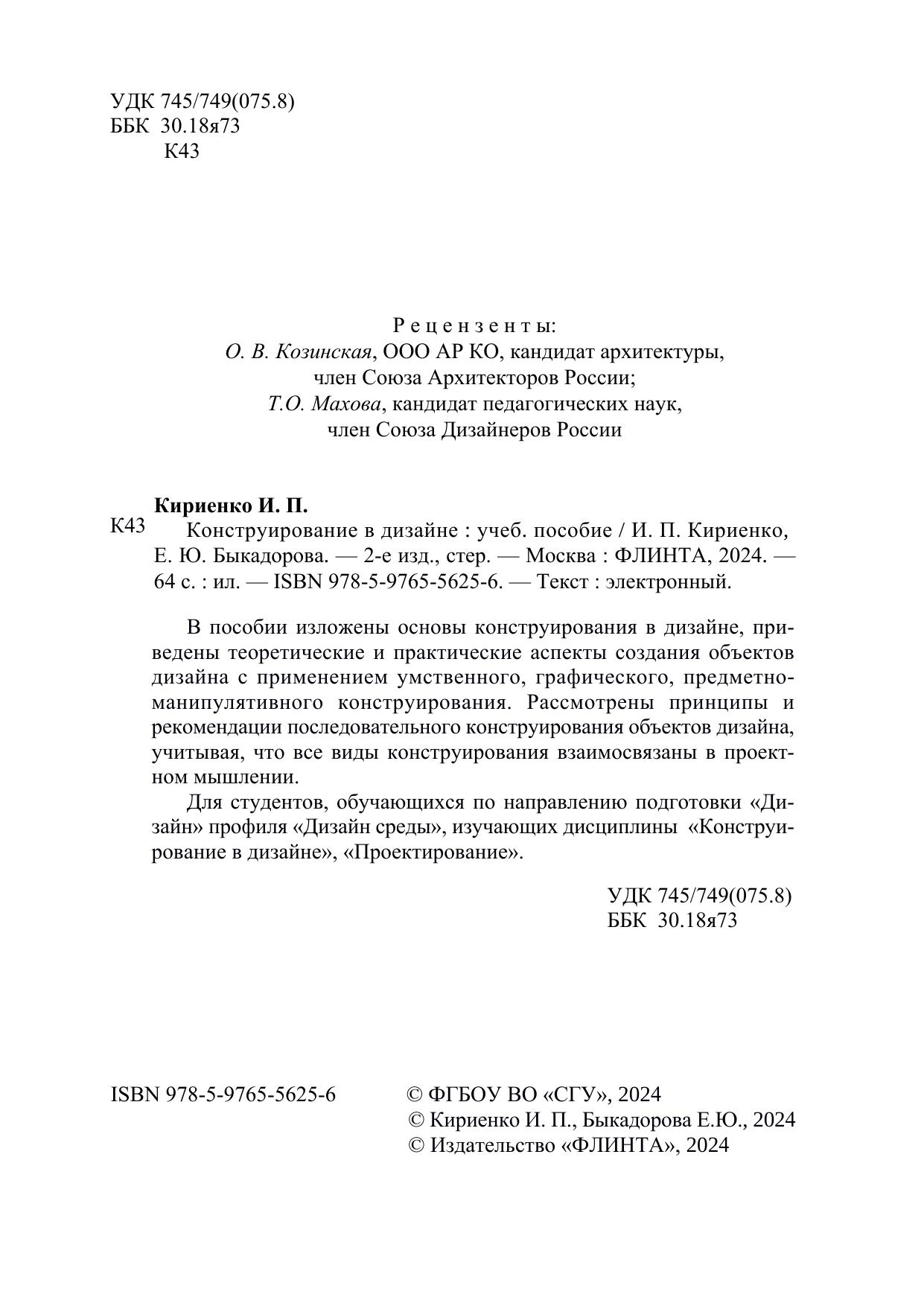 В пособии изложены основы конструирования в дизайне, приведены теоретические и практические аспекты создания объектов дизайна с применением умственного, графического, предметно-манипулятивного конструирования. Рассмотрены принципы и рекомендации последовательного конструирования объектов дизайна, учитывая, что все виды конструирования взаимосвязаны в проектном мышлении.