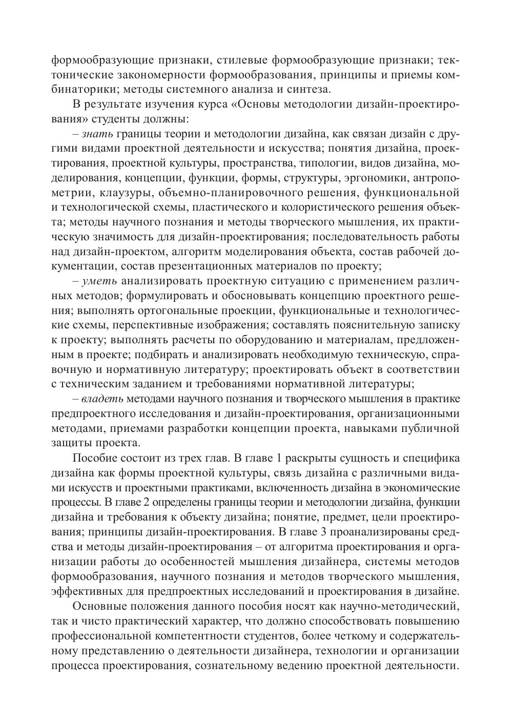 В учебном пособии рассматриваются основные понятия и категории дизайна как формы проектной деятельности, границы теории и методологии дизайна, методы и приемы исследовательской и творческой деятельности дизайнера, средства дизайн-проектирования; даются практические рекомендации по организации процесса проектирования, алгоритму и принципам эффективного моделирования объекта.