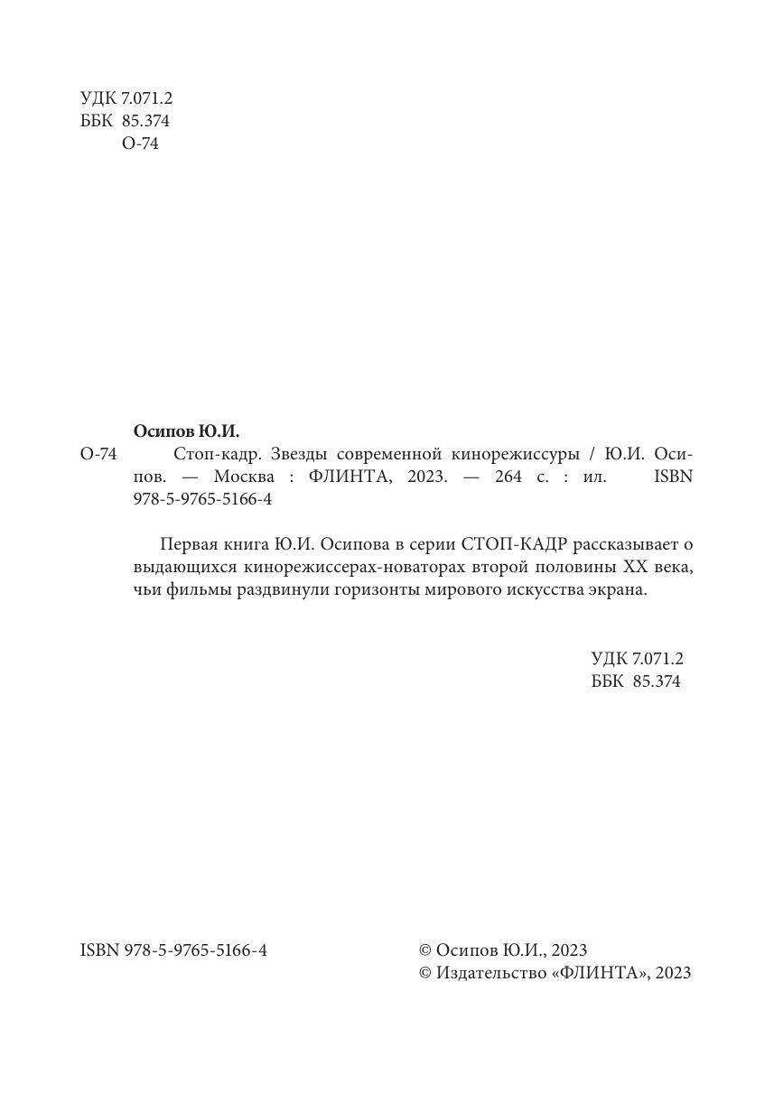 Первая книга Ю.И. Осипова в серии СТОП-КАДР рассказывает о выдающихся кинорежиссерах-новаторах второй половины ХХ века, чьи фильмы раздвинули горизонты мирового искусства экрана.