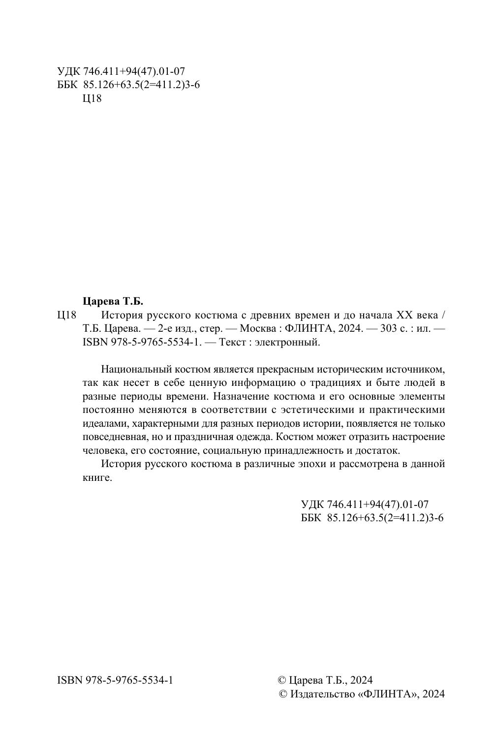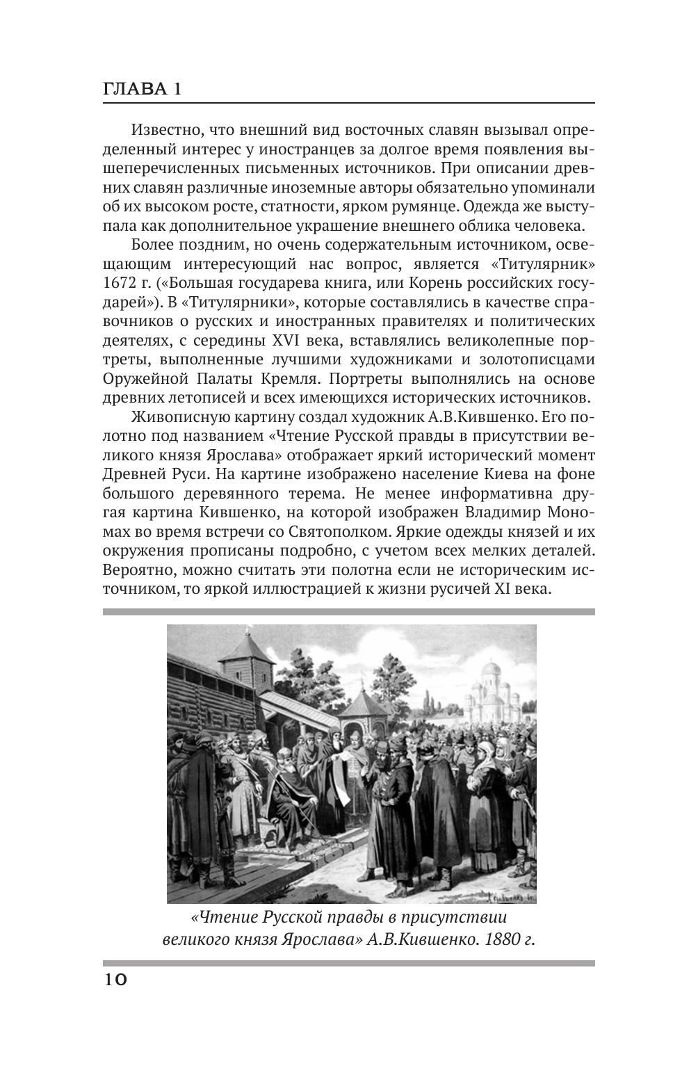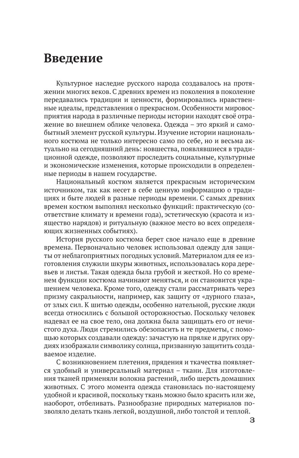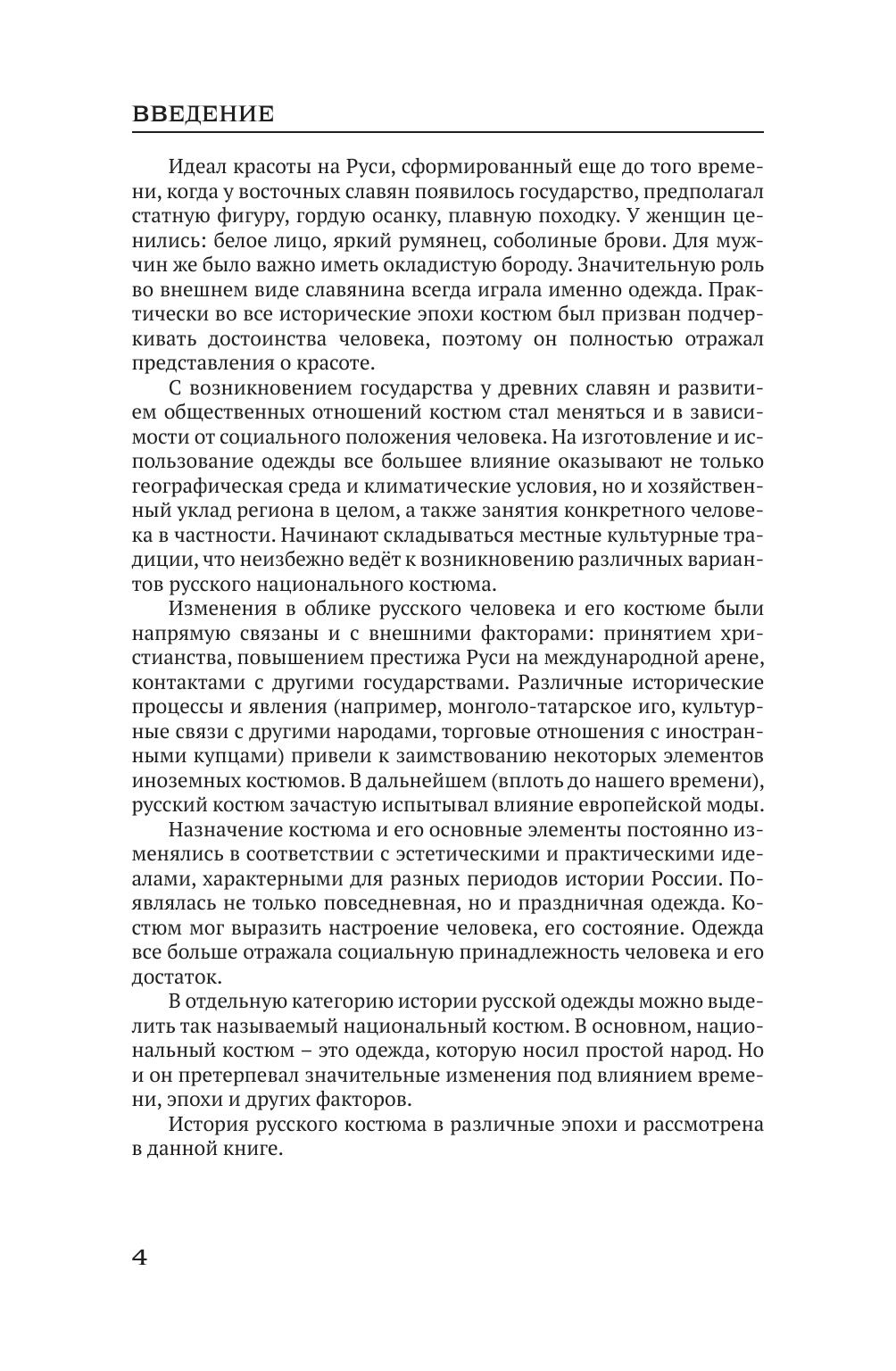 Национальный костюм является прекрасным историческим источником, так как несет в себе ценную информацию о традициях и быте людей в разные периоды времени. Назначение костюма и его основные элементы постоянно меняются в соответствии с эстетическими и практическими идеалами, характерными для разных периодов истории, появляется не только повседневная, но и праздничная одежда. Костюм может отразить настроение человека, его состояние, социальную принадлежность и достаток. История русского костюма в различные эпохи и рассмотрена в данной книге.