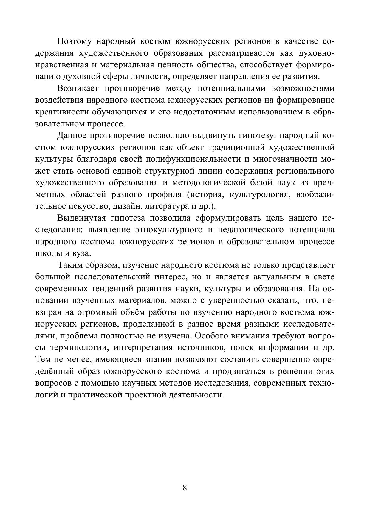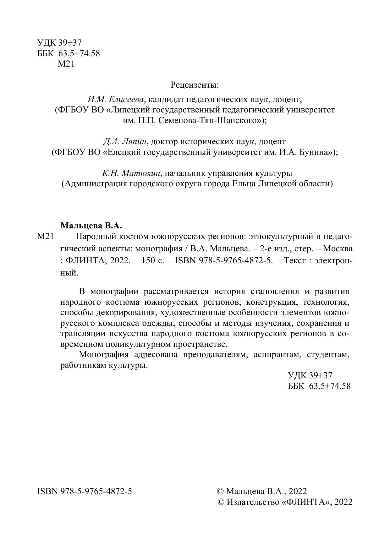 В монографии рассматривается история становления и развития народного костюма южнорусских регионов; конструкция, технология, способы декорирования, художественные особенности элементов южнорусского комплекса одежды; способы и методы изучения, сохранения и трансляции искусства народного костюма южнорусских регионов в современном поликультурном пространстве.