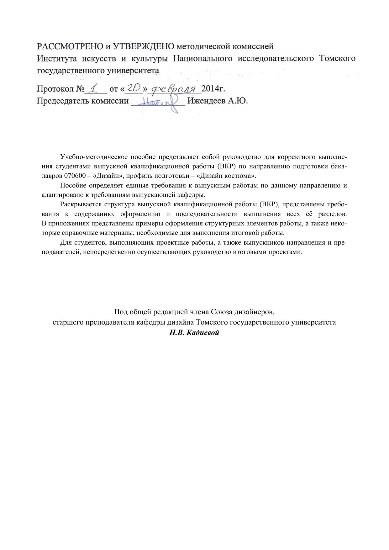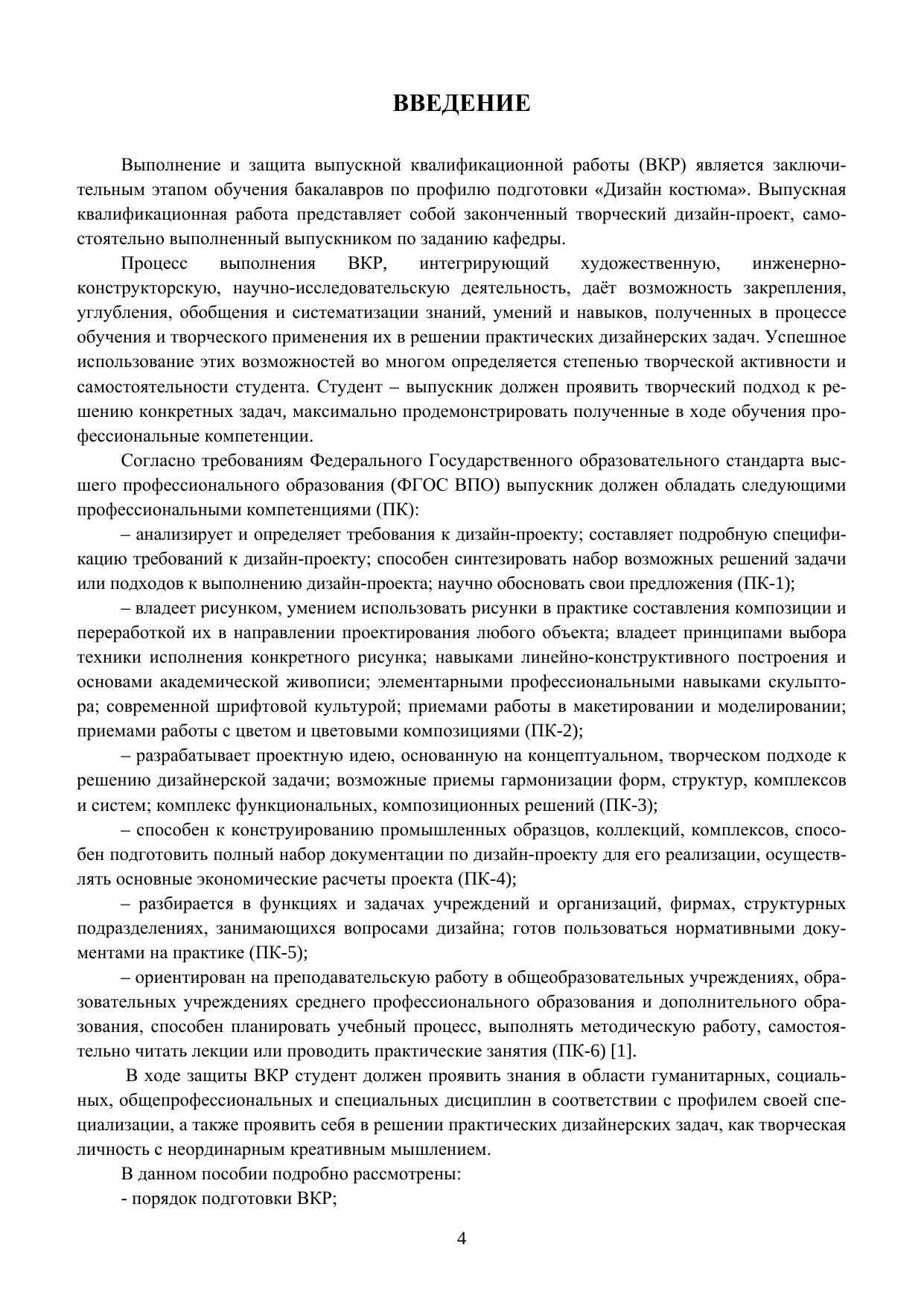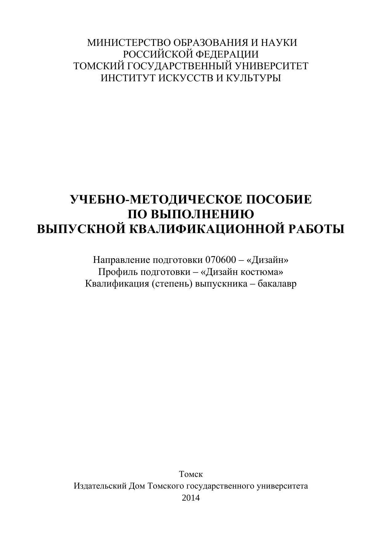 Учебно-методическое пособие по выполнению выпускной квалификационной работы. Направление подготовки 070600 – «Дизайн». Профиль подготовки – «Дизайн костюма». Квалификация (степень) выпускника – бакалавр
