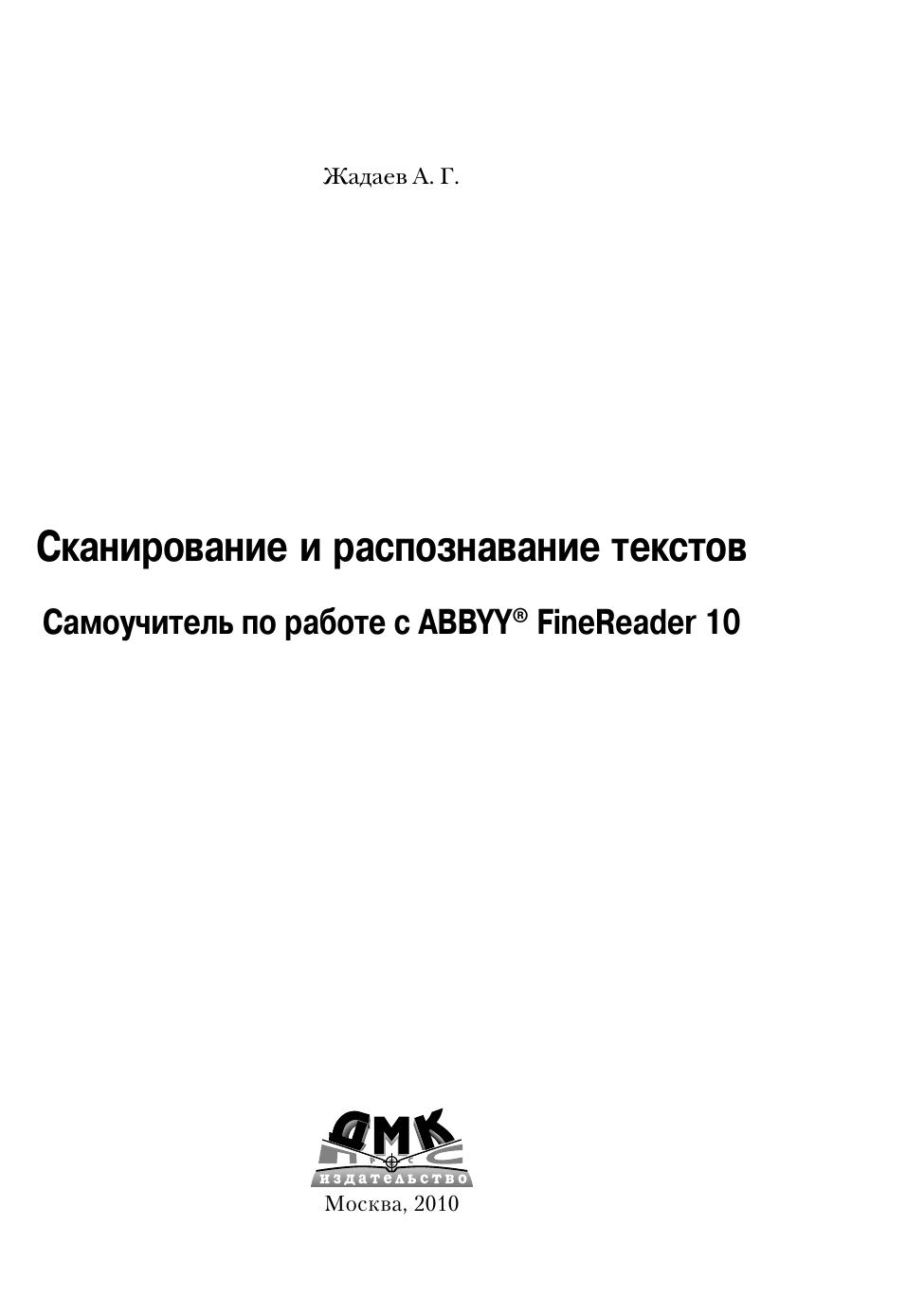 Сканирование и распознавание текстов. Самоучитель по работе с ABBYY FineReader 10