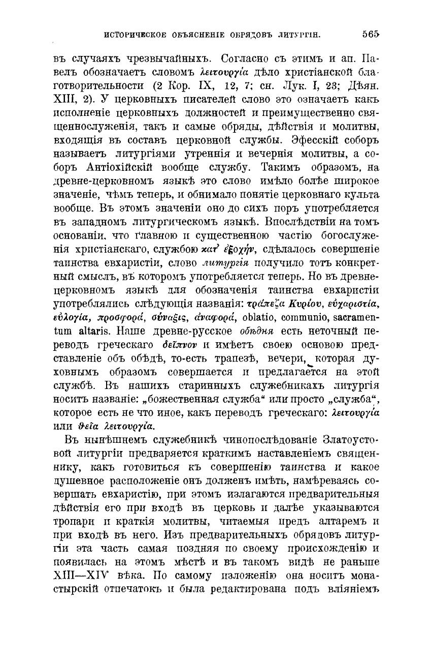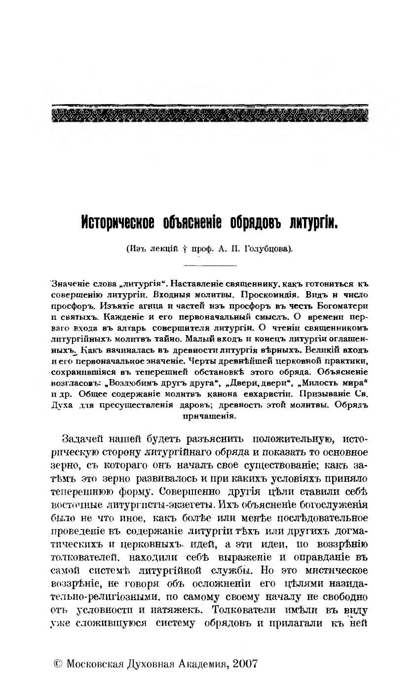 Историческое объяснение обрядов литургии (из лекций)