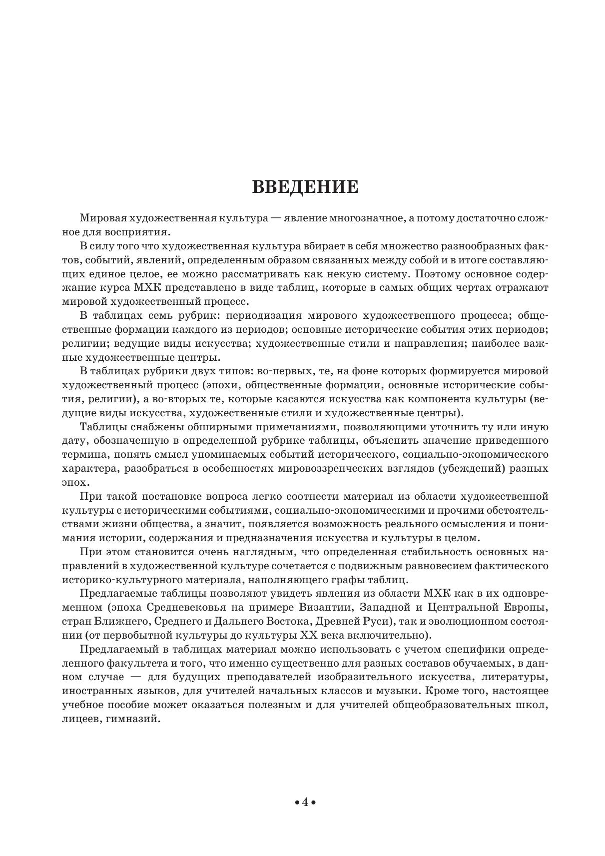 В учебном пособии предпринята попытка определить примерный объем историко-культурного материала, знать который обязан каждый образованный человек. Осуществить поставленную цель предлагается посредством выделения наиболее значимых фактов истории мировой художественной культуры на фоне основных этапов общеисторического процесса и их краткой характеристики.