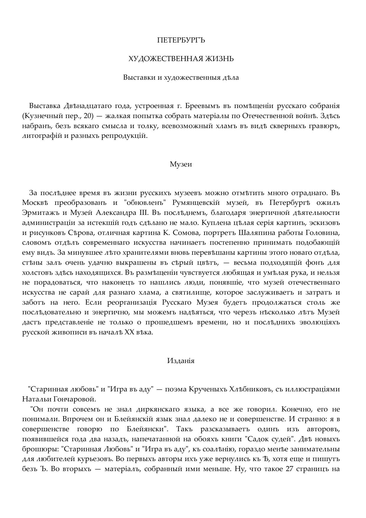 Петербург. Художественная жизнь