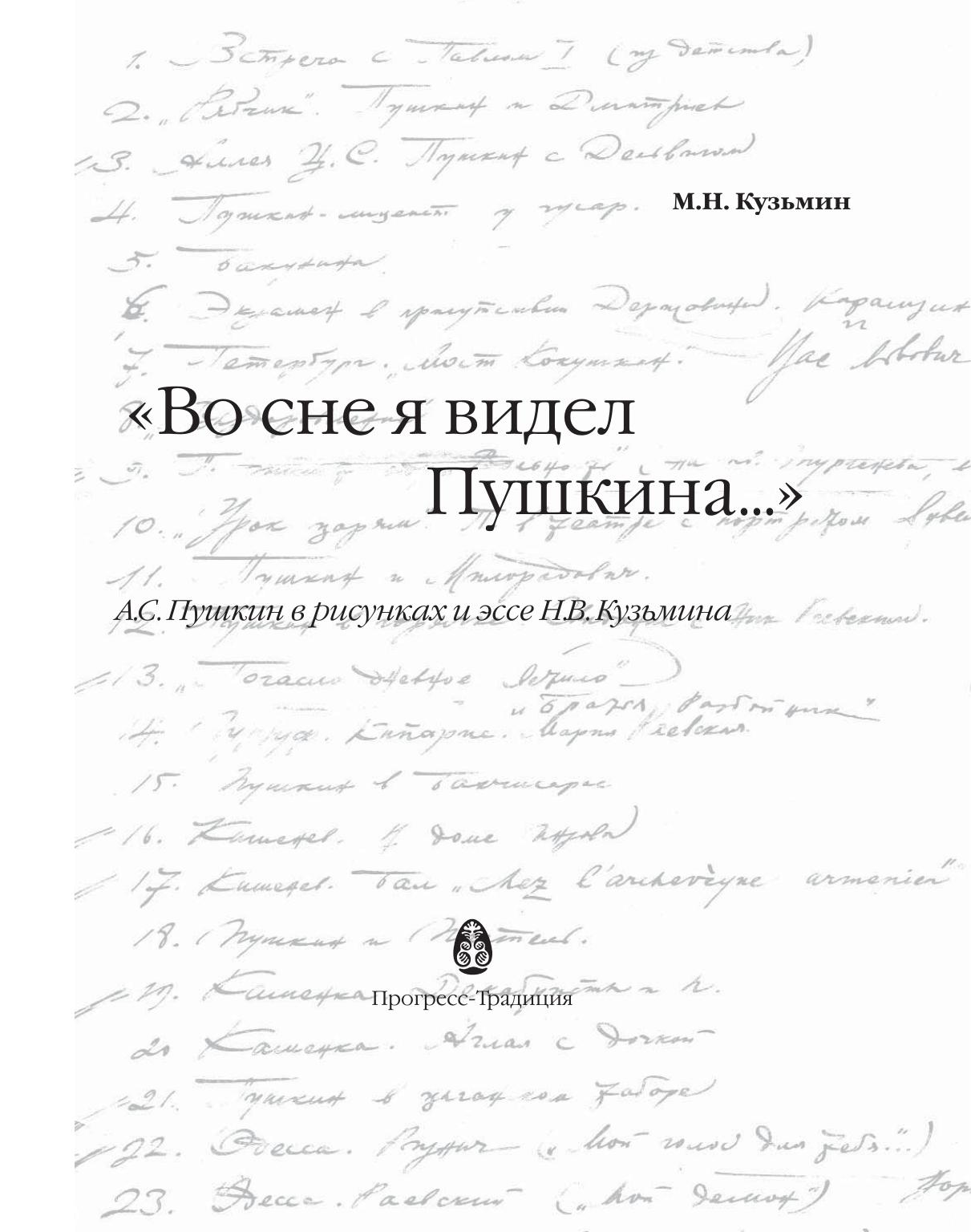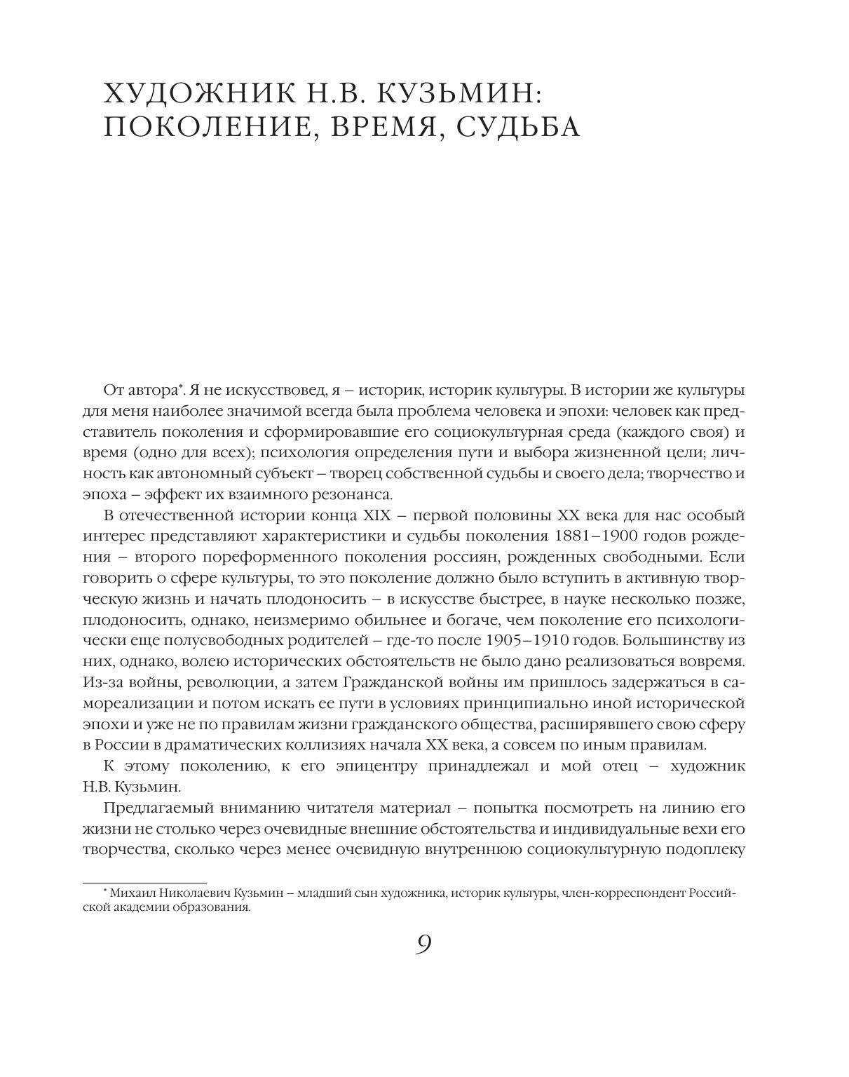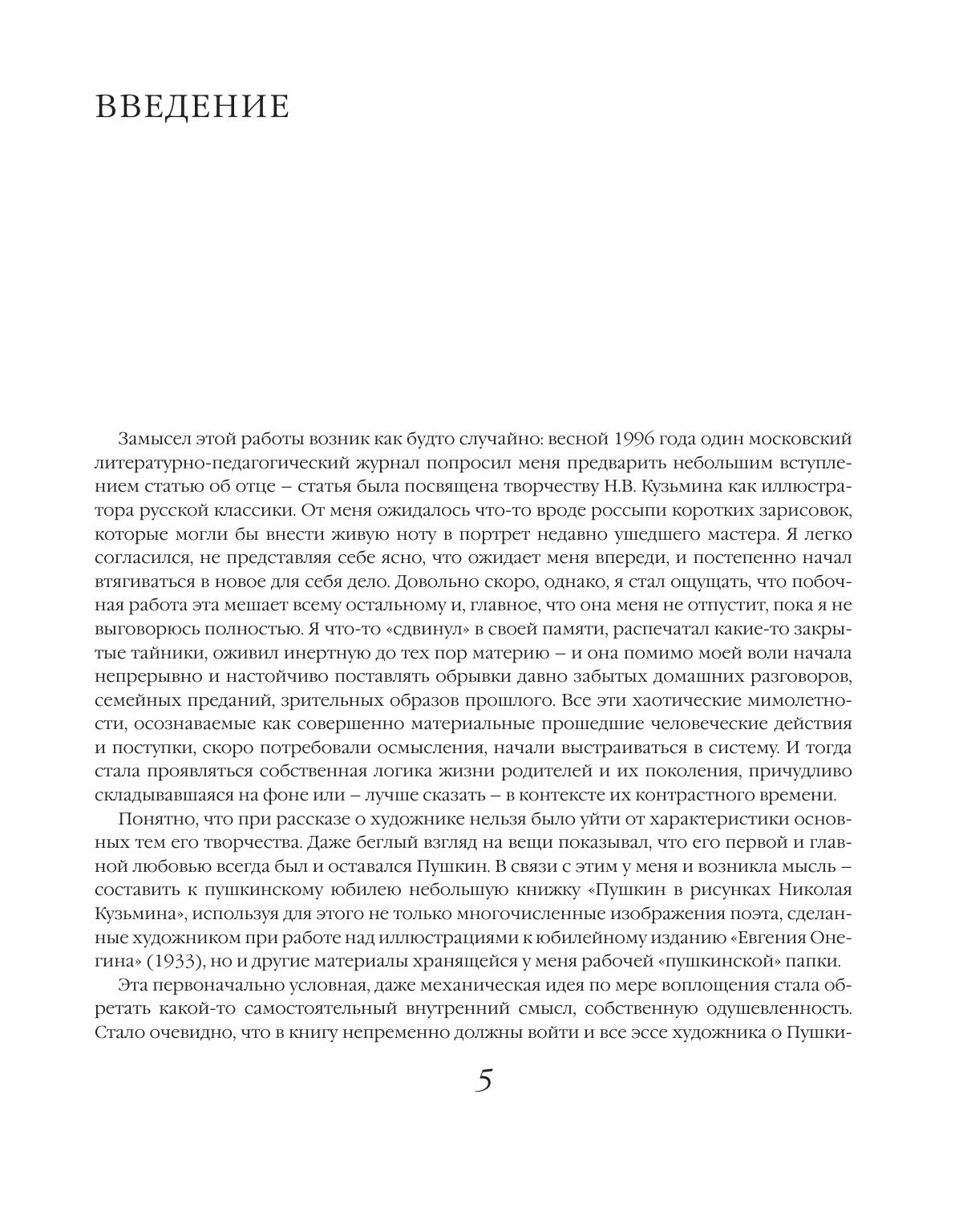 В предлагаемой книге, подготовленной к пушкинскому юбилею сыном художника, историком культуры М.Н. Кузьминым, собраны семейные воспоминания и материалы домашнего архива, а также представлены размышления автора о творческой судьбе Н.В. Кузьмина и его поколения. Значительная часть рисунков из "пушкинской" папки художника публикуется впервые.