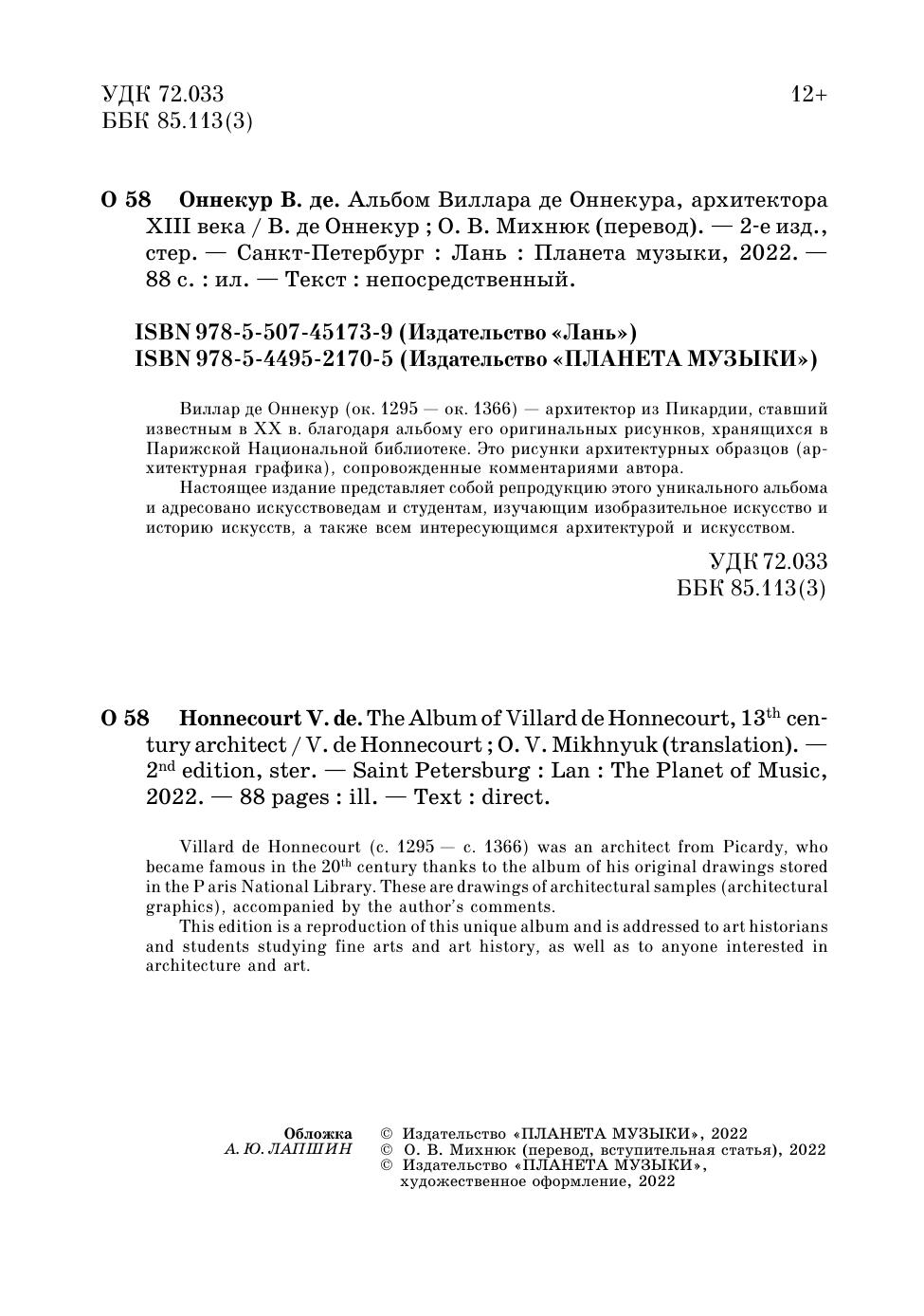 Виллар де Оннекур (ок.1295 – ок.1366) – архитектор из Пикардии, ставший известным в XX в. благодаря альбому его оригинальных рисунков, хранящихся в Парижской Национальной библиотеке. Это рисунки архитектурных образцов (архитектурная графика), сопровожденные комментариями автора. Настоящее издание представляет собой репродукцию этого уникального альбома и адресовано искусствоведам и студентам, изучающим изобразительное искусство и историю искусств, а также всем интересующимся архитектурой и искусством.