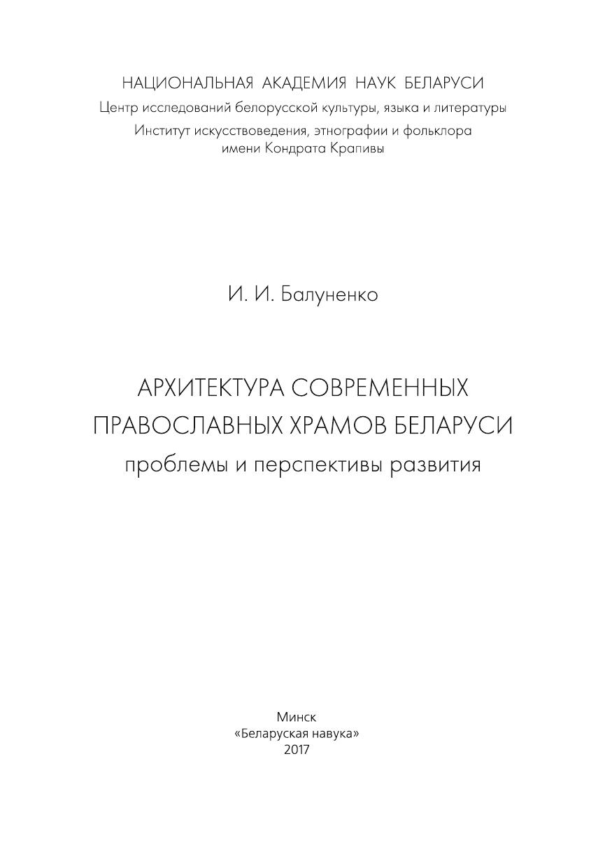 Архитектура современных православных храмов Беларуси: проблемы и перспективы развития Балуненко И.И.