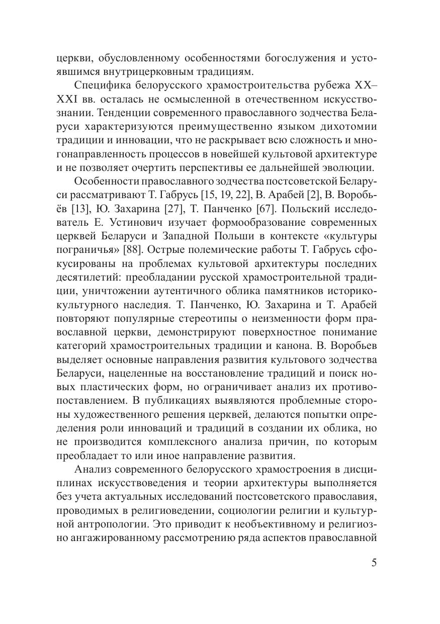 В монографии определены художественно-стилевые направления в современном православном храмостроении Беларуси, раскрыта роль категорий канона и традиции в их формировании, очерчены перспективы развития православного зодчества Беларуси на основе национальных традиций и новейшего мирового опыта проектирования культовых зданий. Предназначено для исследователей современного сакрального зодчества, практикующих архитекторов, студентов художественных и архитектурных специальностей, представителей духовенства и всех, кто интересуется проблемами белорусского храмостроения.