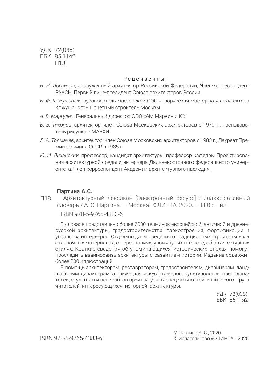 В словаре представлено более 2000 терминов европейской, античной и древнерусской архитектуры, градостроительства, паркостроения, фортификации и убранства интерьеров. Отдельно даны сведения о традиционных строительных и отделочных материалах, о персоналиях, упомянутых в тексте, об архитектурных стилях. Краткие сведения об упоминающихся исторических эпохах помогут проследить взаимосвязь архитектуры с развитием истории. Издание содержит более 200 иллюстраций.