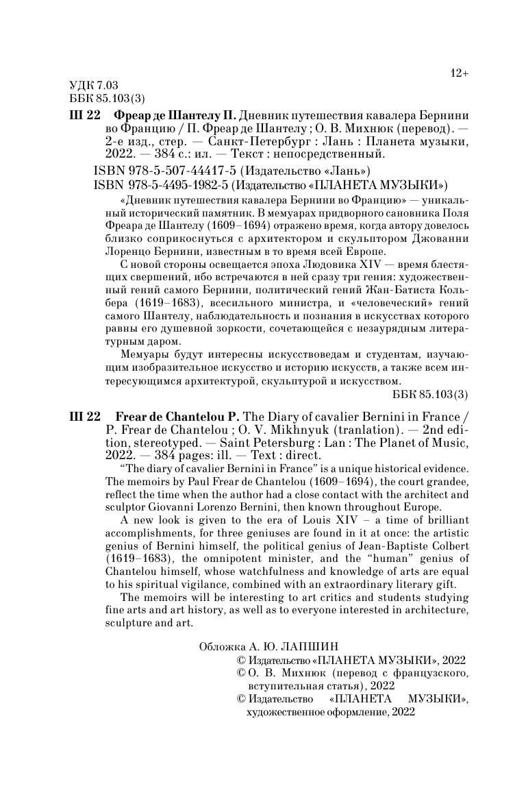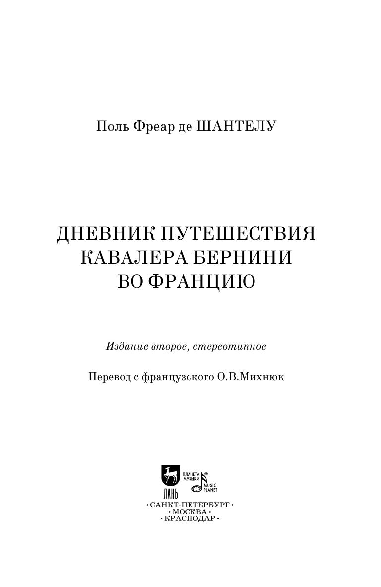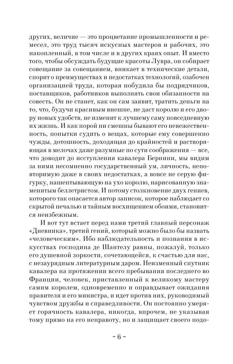 «Дневник путешествия кавалера Бернини во Францию» — уникальный исторический памятник. В мемуарах придворного сановника Поля Фреара де Шантелу (1609–1694) отражено время, когда автору довелось близко соприкоснуться с архитектором и скульптором Джованни Лоренцо Бернини, известным в то время всей Европе.