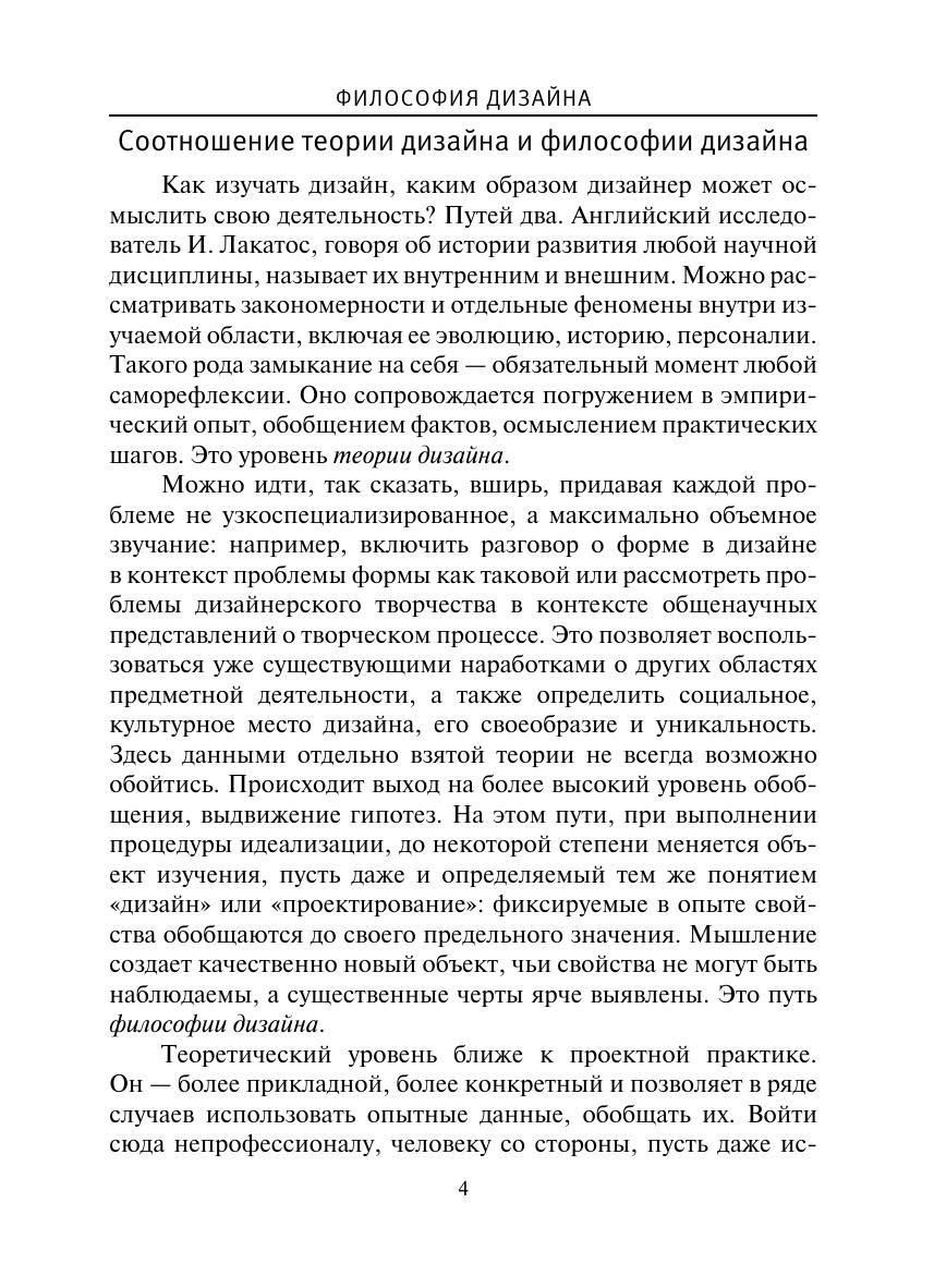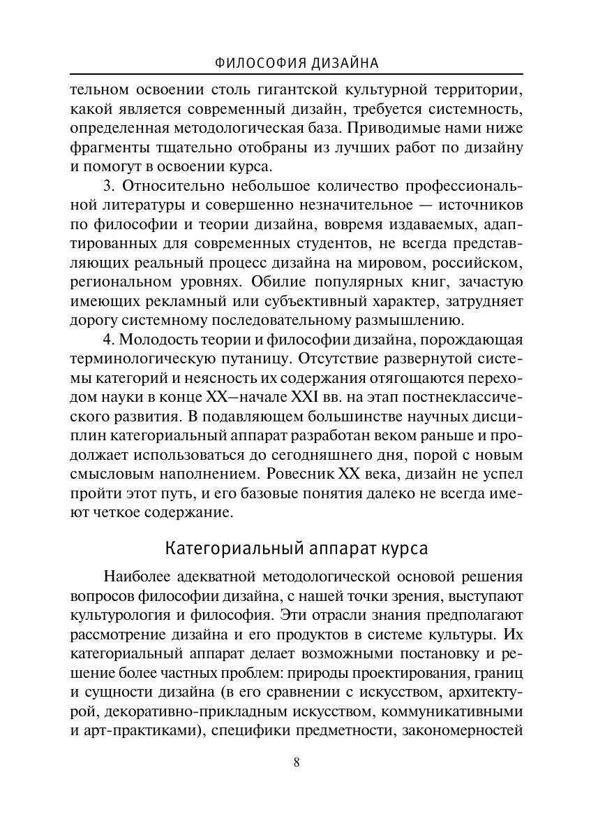 Курс «Философия дизайна» читается в магистерских программах «Графический дизайн» и «Neoindustrial human design» УрФУ. В нем даются основные характеристики и категории дизайна как вида проектной творческой деятельности, главной целью которого является гармонизация среды обитания человека. В пособии предлагаются базовые теоретические положения, тестовые задания, контрольные вопросы, фрагменты методологически-значимых текстов теоретиков и практиков дизайна. Адресовано студентам и аспирантам творческих, проектных, гуманитарных специальностей, а также специалистам-дизайнерам.