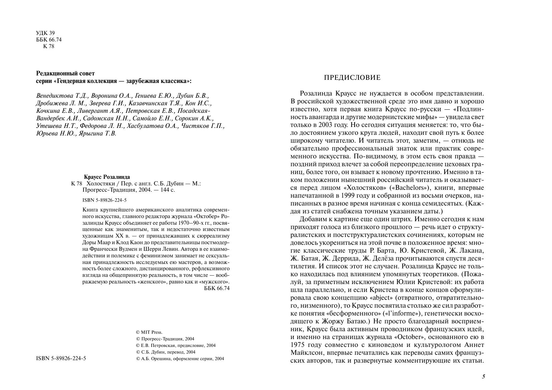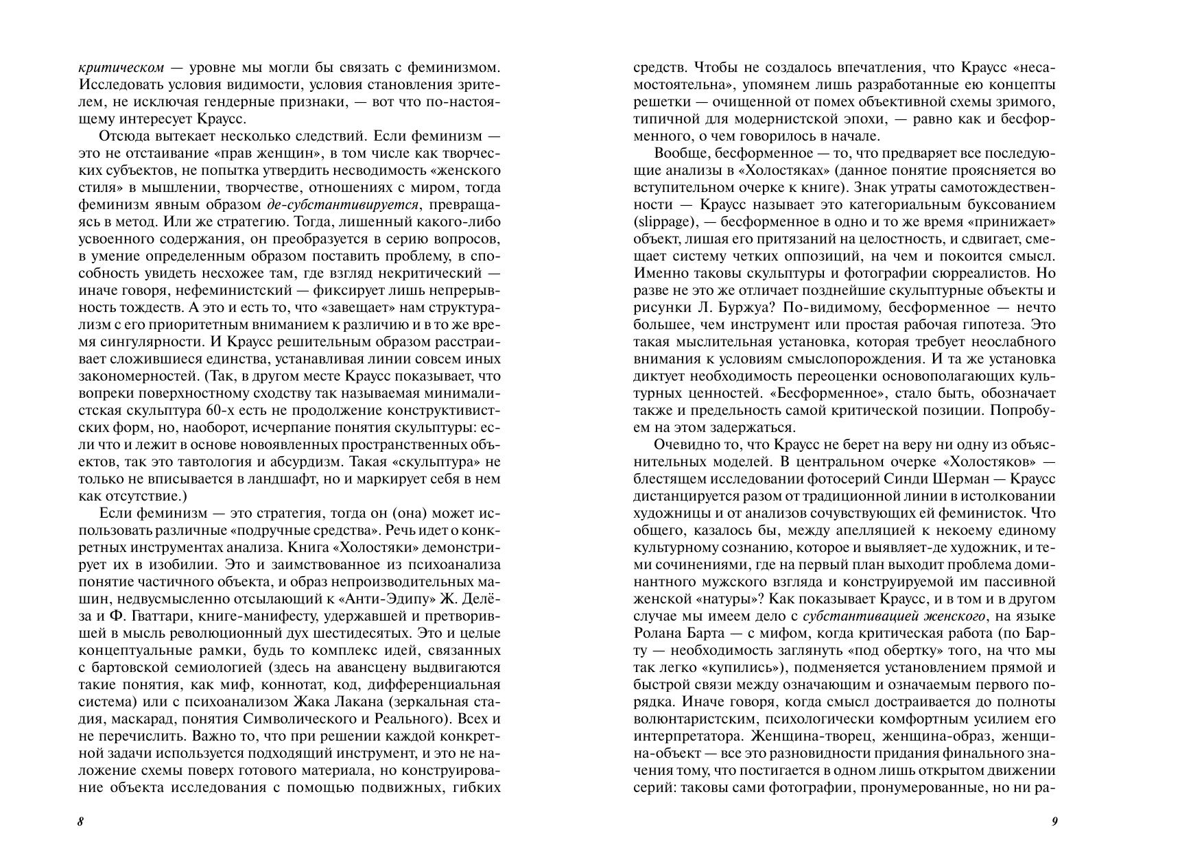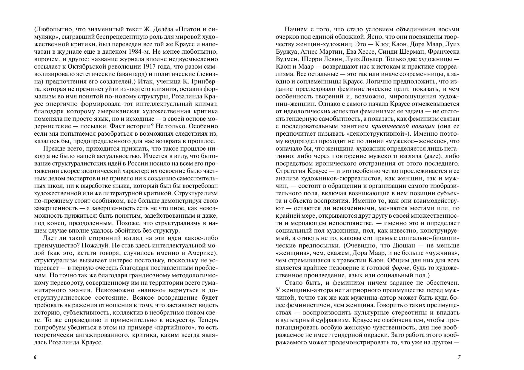 Книга крупнейшего американского аналитика современного искусства, главного редактора журнала "Октобер" Розалинды Краусс объединяет ее работы 1970–90#х гг., посвященные как знаменитым, так и недостаточно известным художницам ХХ в. — от принадлежавших к сюрреализму Доры Маар и Клод Каон до представительницы постмодерна Франчески Вудмен и Шерри Левин. Автора в ее взаимодействии и полемике с феминизмом занимает не сексуальная принадлежность исследуемых ею мастеров, а возможность более сложного, дистанцированного, рефлексивного взгляда на общепринятую реальность, в том числе — воображаемую реальность "женского", равно как и "мужского".