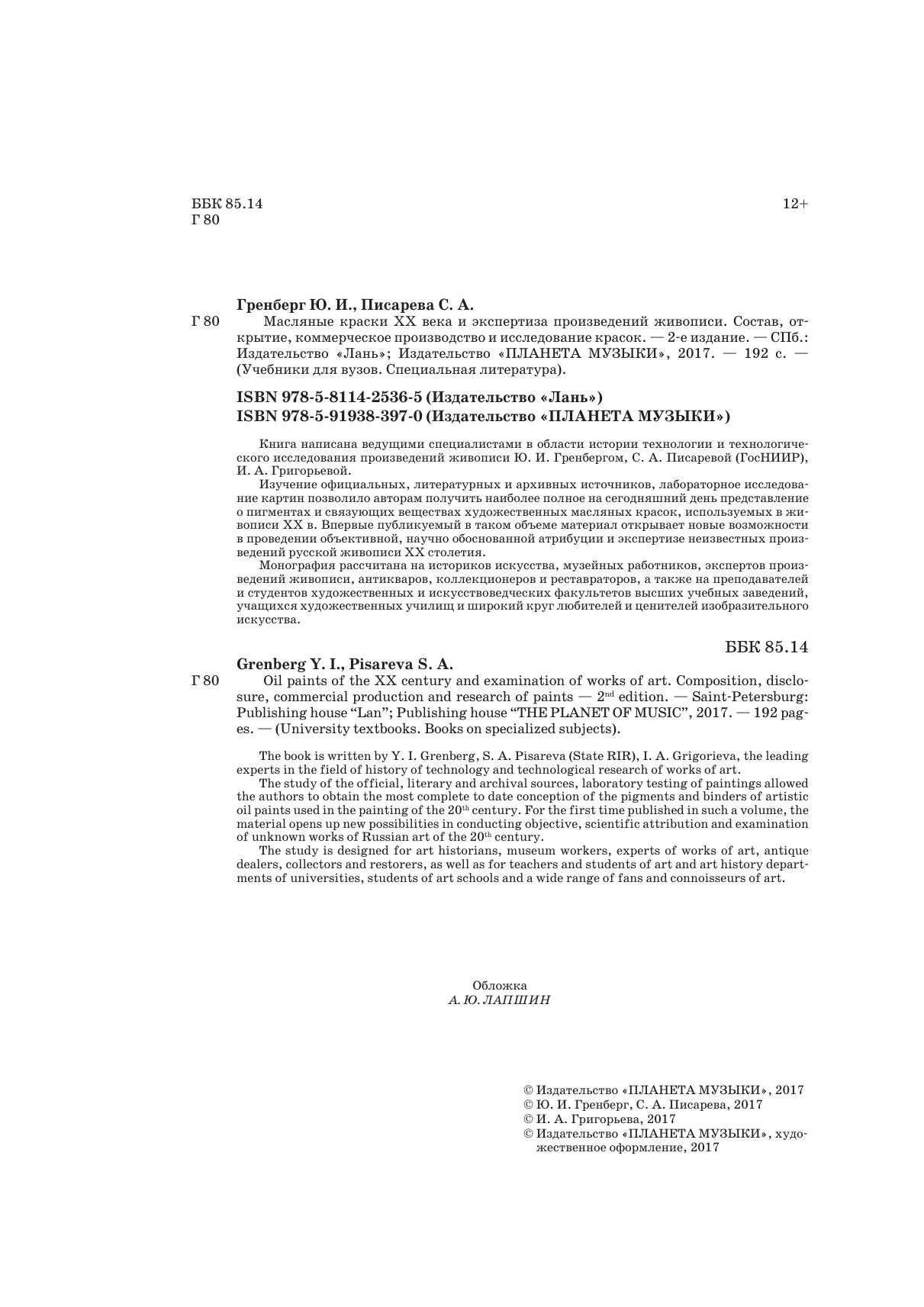 Книга написана ведущими специалистами в области истории технологии и технологического исследования произведений живописи Ю. И. Гренбергом, С. А. Писаревой (ГосНИИР), И. А. Григорьевой (Гос. Эрмитаж).