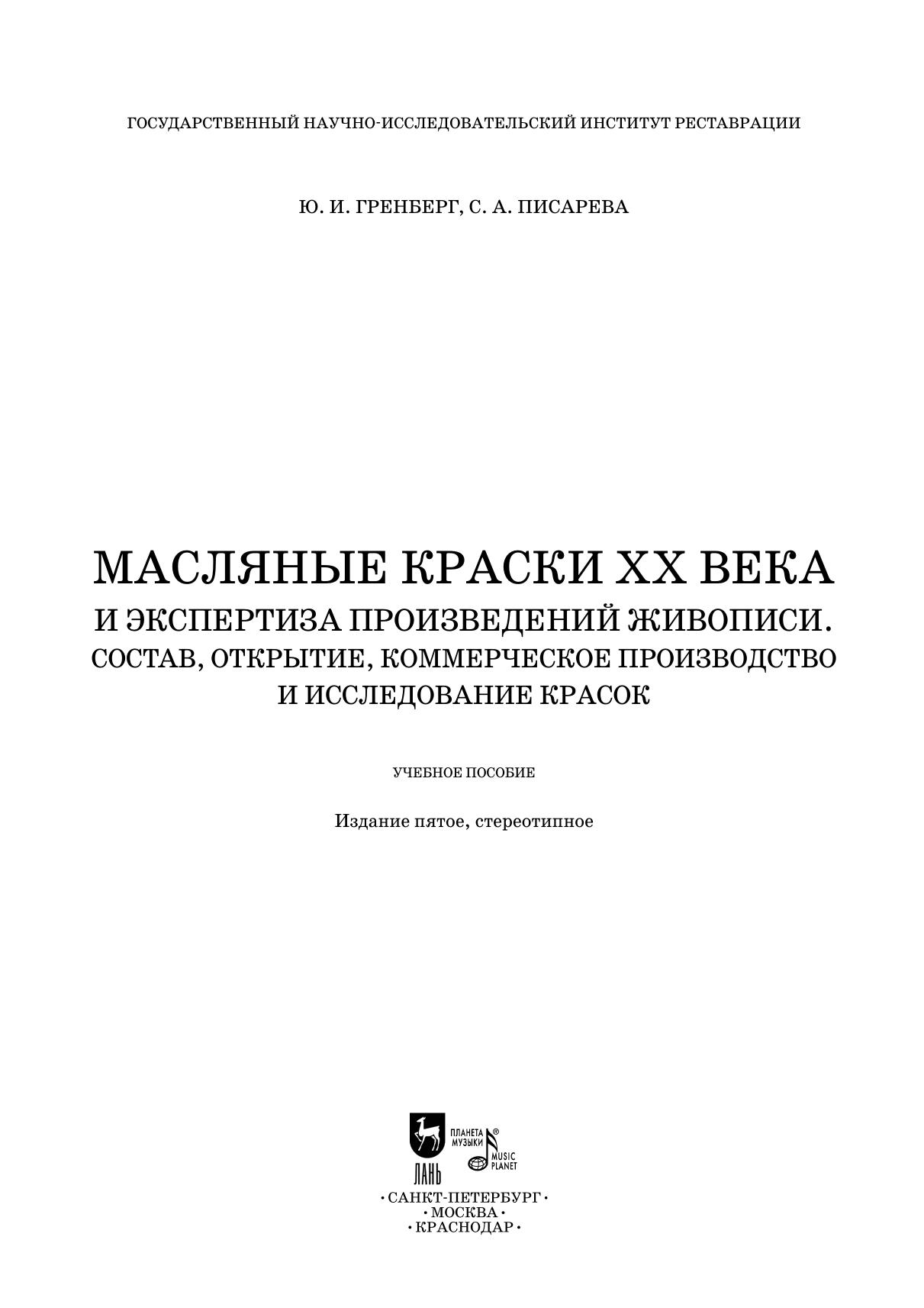 The study of the official, literary and archival sources, laboratory testing of paintings allowed the authors to obtain the most complete to date conception of the pigments and binders of artistic oil paints used in the painting of the 20th century. For the first time published in such a volume the material opens up new possibilities in conducting objective, scientific attribution and examination of unknown works of Russian art of the 20th century.