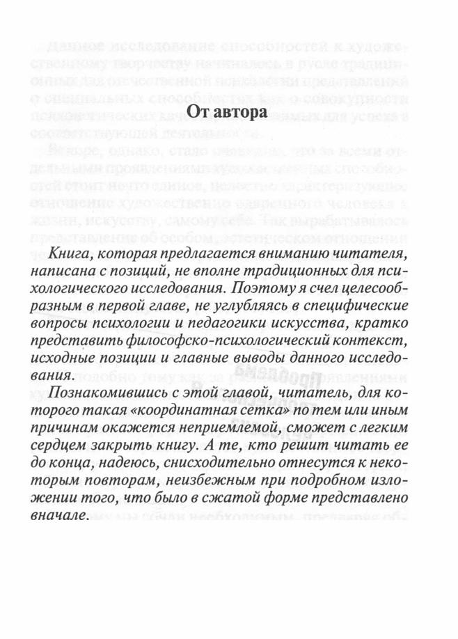 Книга предназначена широкому кругу читателей: тем, кто интересуется философско-психологическими проблемами творчества и психологией способностей, а также педагогам- практикам, заинтересованным в эффективном преподавании художественных дисциплин и развитии художественных способностей учащихся.