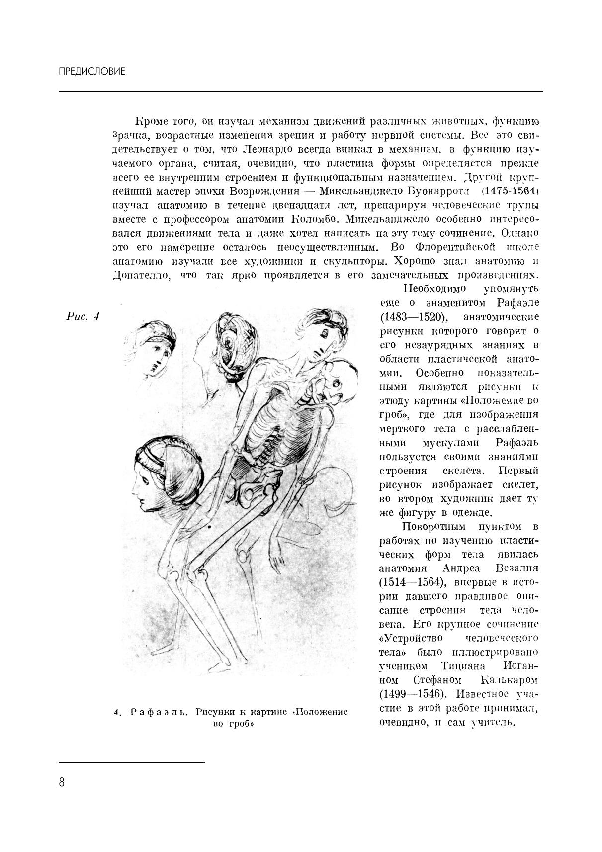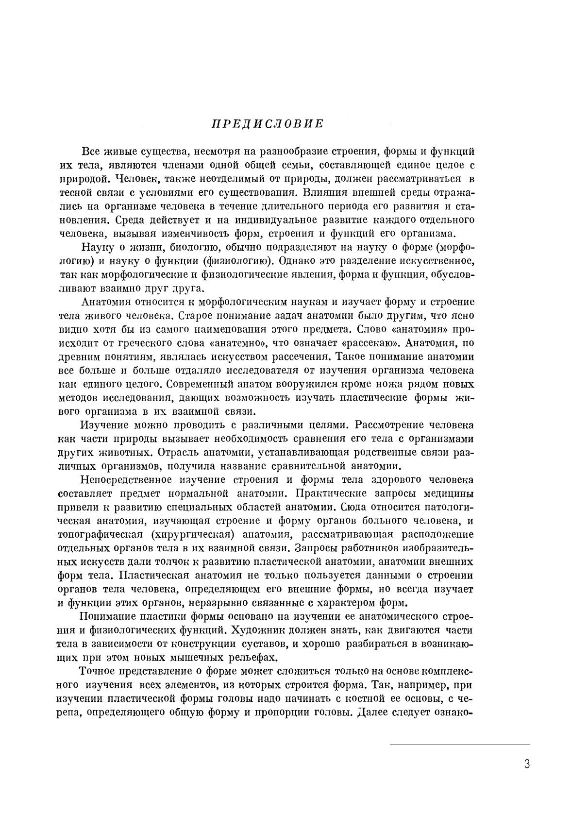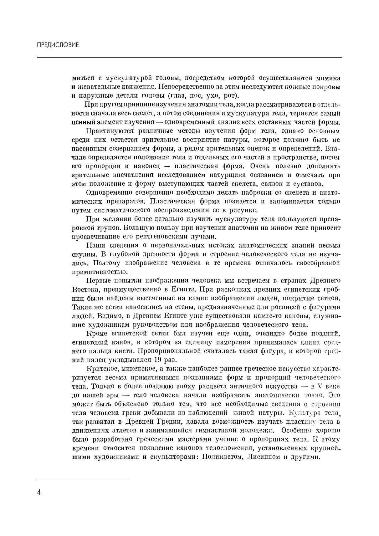 Настоящее издание представляет собой руководство по пластической анатомии для высших художественных учебных заведений. Преподаватели рисунка, живописи и скульптуры должны найти в таком руководстве достаточно полный по объему и научный по содержанию материал, пользуясь которым, они сумеют помочь учащимся глубоко изучить пластическую форму человека.