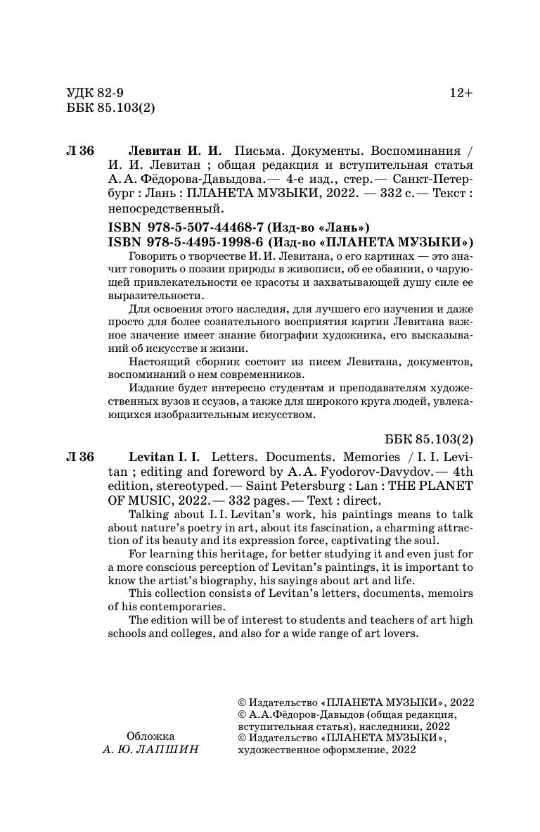 This collection consists of Levitan’s letters, documents, memoirs of his contemporaries.