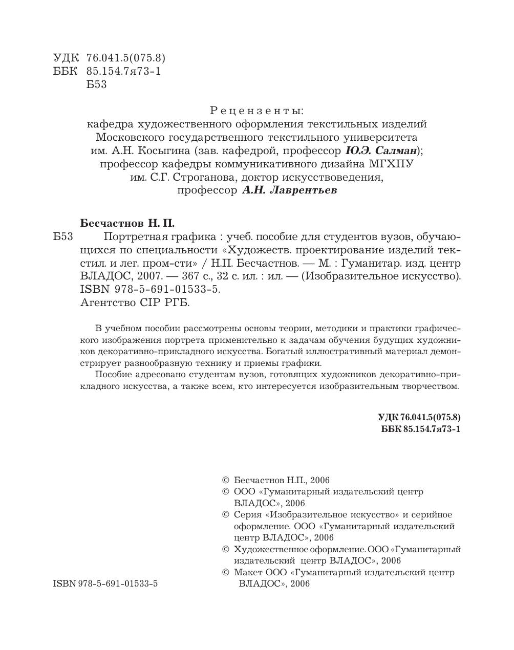 В учебном пособии рассмотрены основы теории, методики и практики графического изображения портрета применительно к задачам обучения будущих художников декоративно прикладного искусства. Богатый иллюстративный материал демонстрирует разнообразную технику и приемы графики.