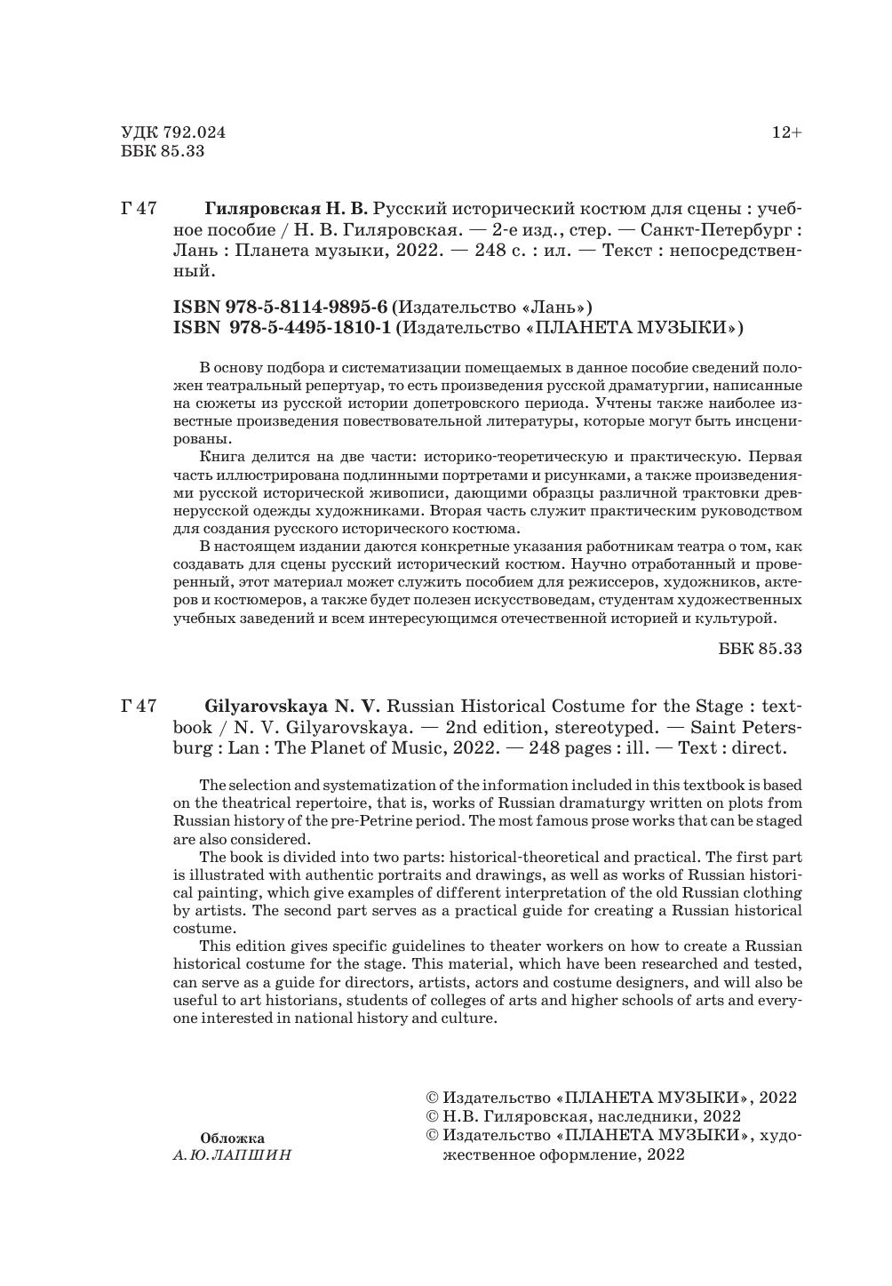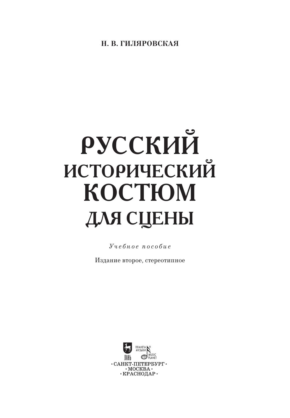 В настоящем издании даются конкретные указания работникам театра о том, как создаввать для сцены русский исторический костюм. Научно отработанный и проверенный, этот материал может служить пособием для режиссеров, художников, актеров и костюмеров, а также будет полезен искусствоведам, студентам художественных учебных заведений и всем интересующимся отечественной историей и культурой.