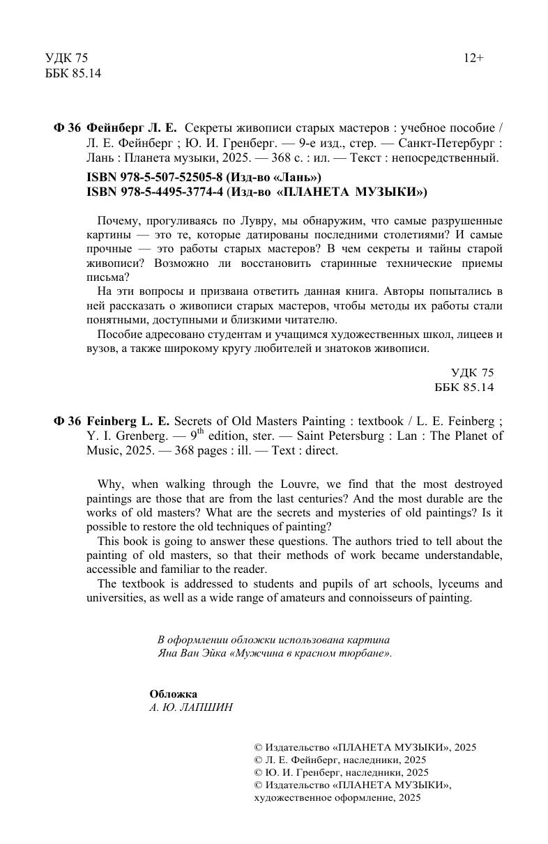Почему, прогуливаясь по Лувру, мы обнаружим, что самые разрушенные картины – это те, которые датированы последними столетиями? И самые прочные – это работы старых мастеров? В чем секреты и тайны старой живописи? Возможно ли восстановить старинные технические приемы письма? На эти вопросы и призвана ответить данная книга. Авторы попытались в ней рассказать о живописи старых мастеров, чтобы методы их работы стали понятными, доступными и близкими читателю. Пособие адресовано студентам и учащимся художественных школ, лицеев и вузов, а также широкому кругу любителей и знатоков живописи. Why, when walking through the Louvre, we find that the most destroyed paintings are those that are from the last centuries? And the most durable are the works of old masters? What are the secrets and mysteries of old paintings? Is it possible to restore the old techniques of painting? This book is going to answer these questions. The authors tried to tell about the painting of the old masters, so that their methods of work became understandable, accessible and familiar to the reader. The textbook is addressed to students and pupils of art schools, lyceums and universities, as well as a wide range of amateurs and connoisseurs of painting.