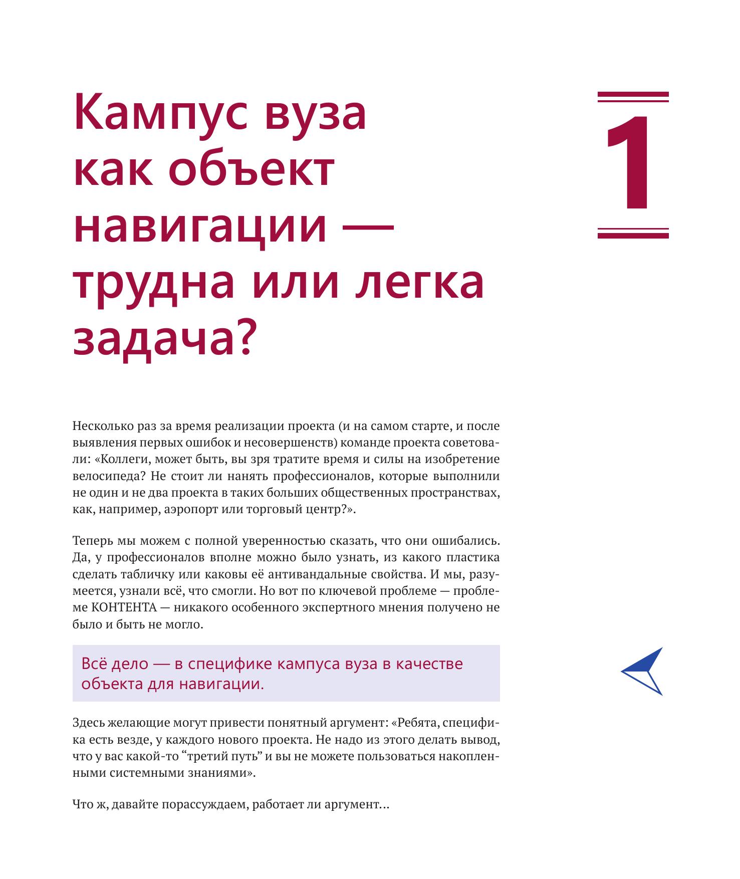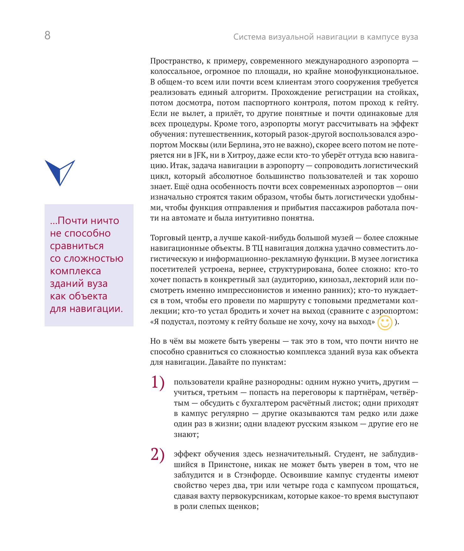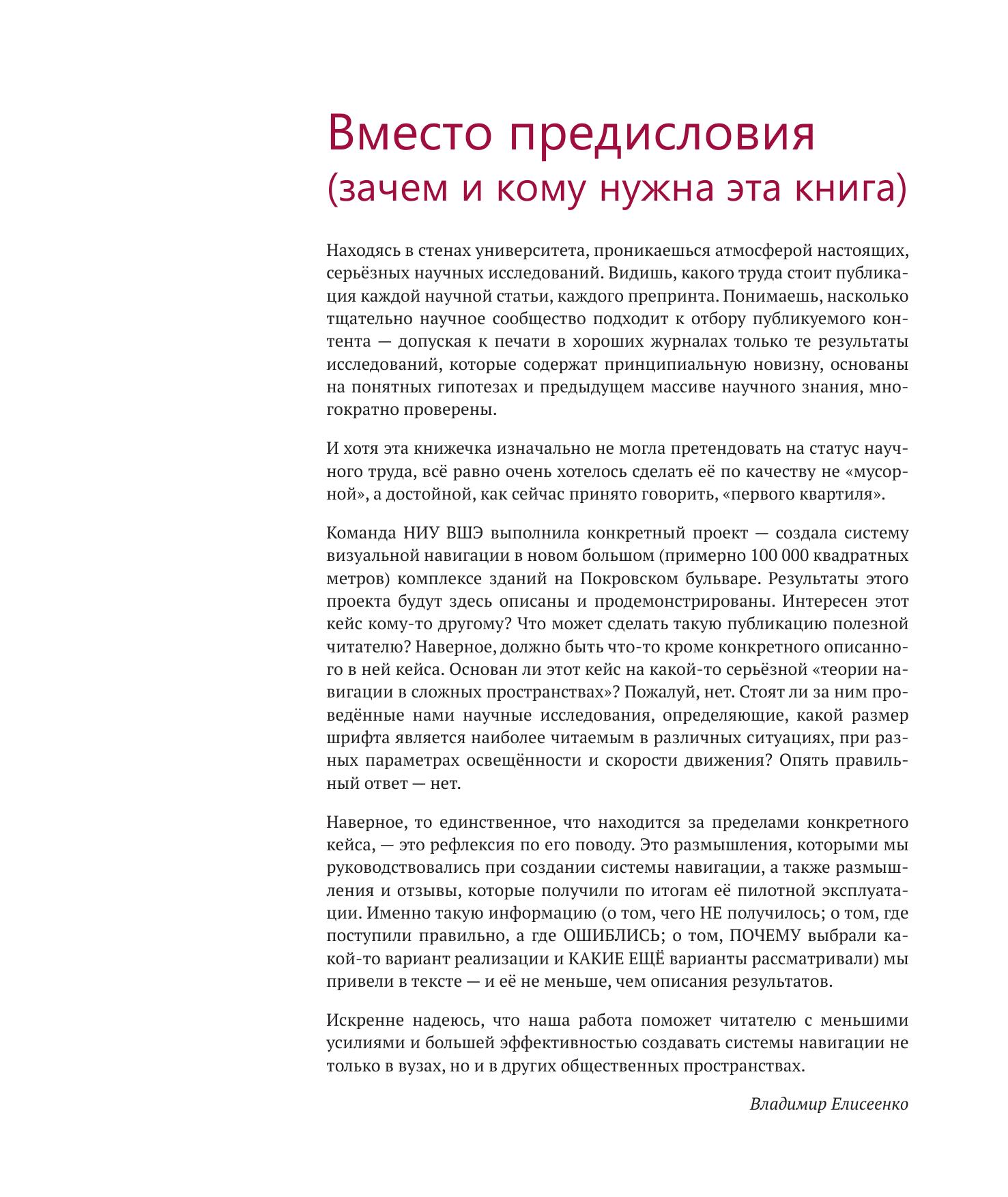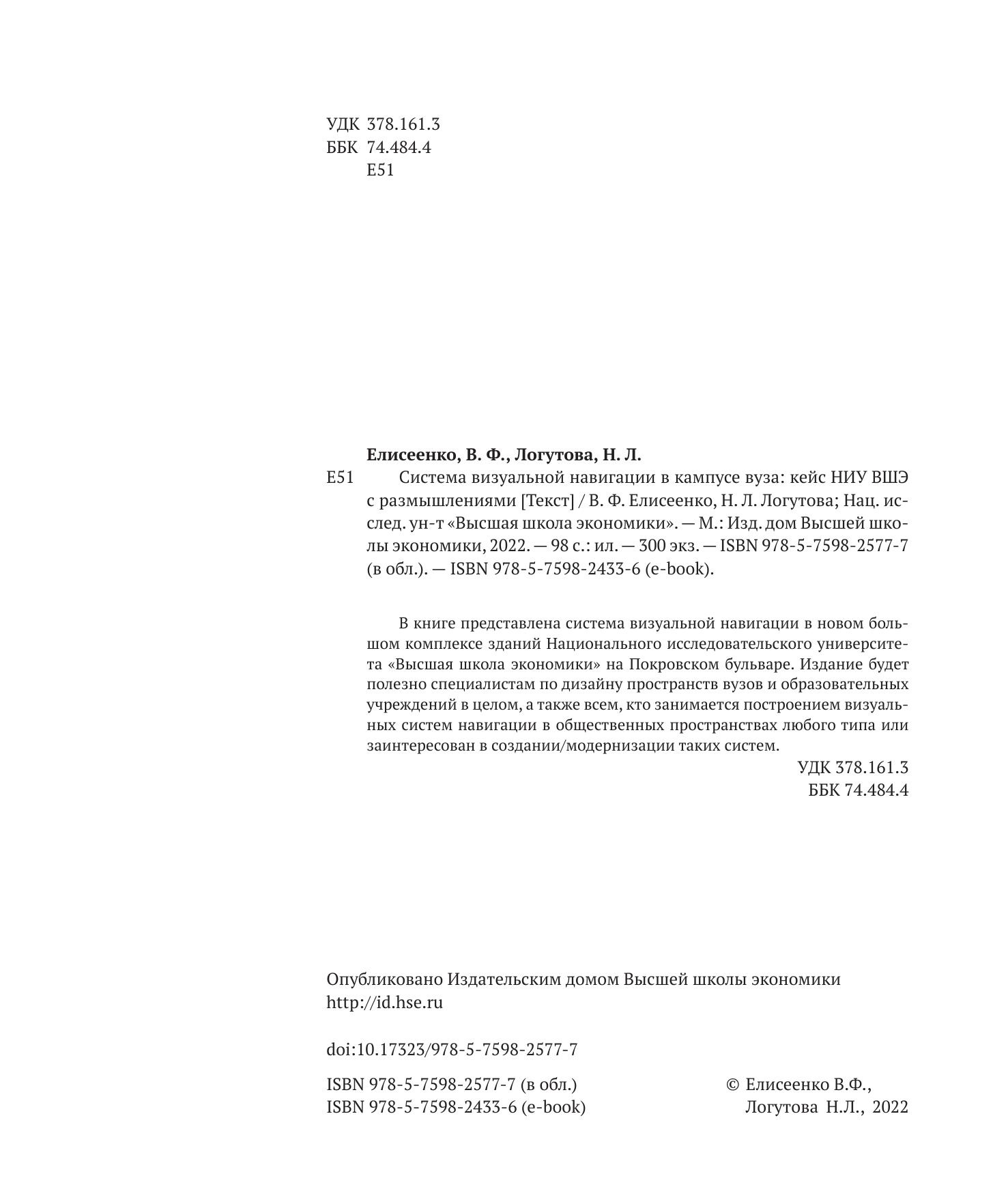 В книге представлена система визуальной навигации в новом большом комплексе зданий Национального исследовательского университета «Высшая школа экономики» на Покровском бульваре. Издание будет полезно специалистам по дизайну пространств вузов и образовательных учреждений в целом, а также всем, кто занимается построением визуальных систем навигации в общественных пространствах любого типа или заинтересован в создании/модернизации таких систем.