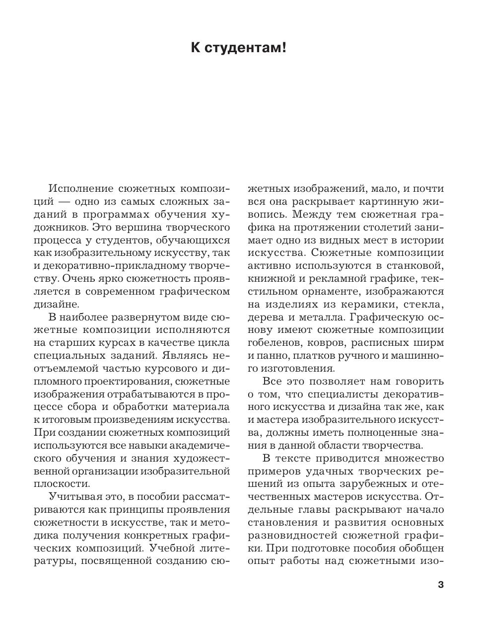 В учебном пособии рассмотрены история, теория и практика сюжетной графики. Особое внимание уделено описанию эволюции основных групп сюжетных композиций, встречающихся в изобразительном и декоративно-прикладном искусстве. Дан обзор графических материалов и техник их использования.
