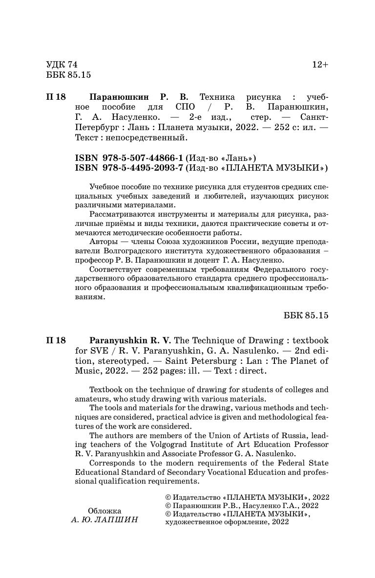 Учебное пособие по технике рисунка для студентов средних специальных учебных заведений и любителей, изучающих рисунок различными материалами.