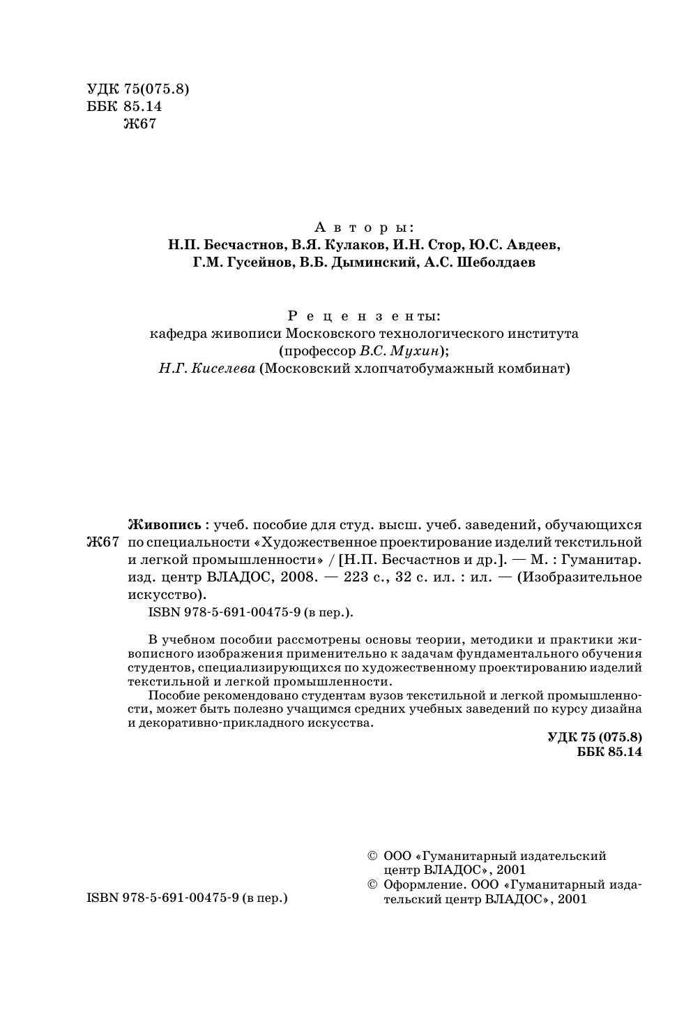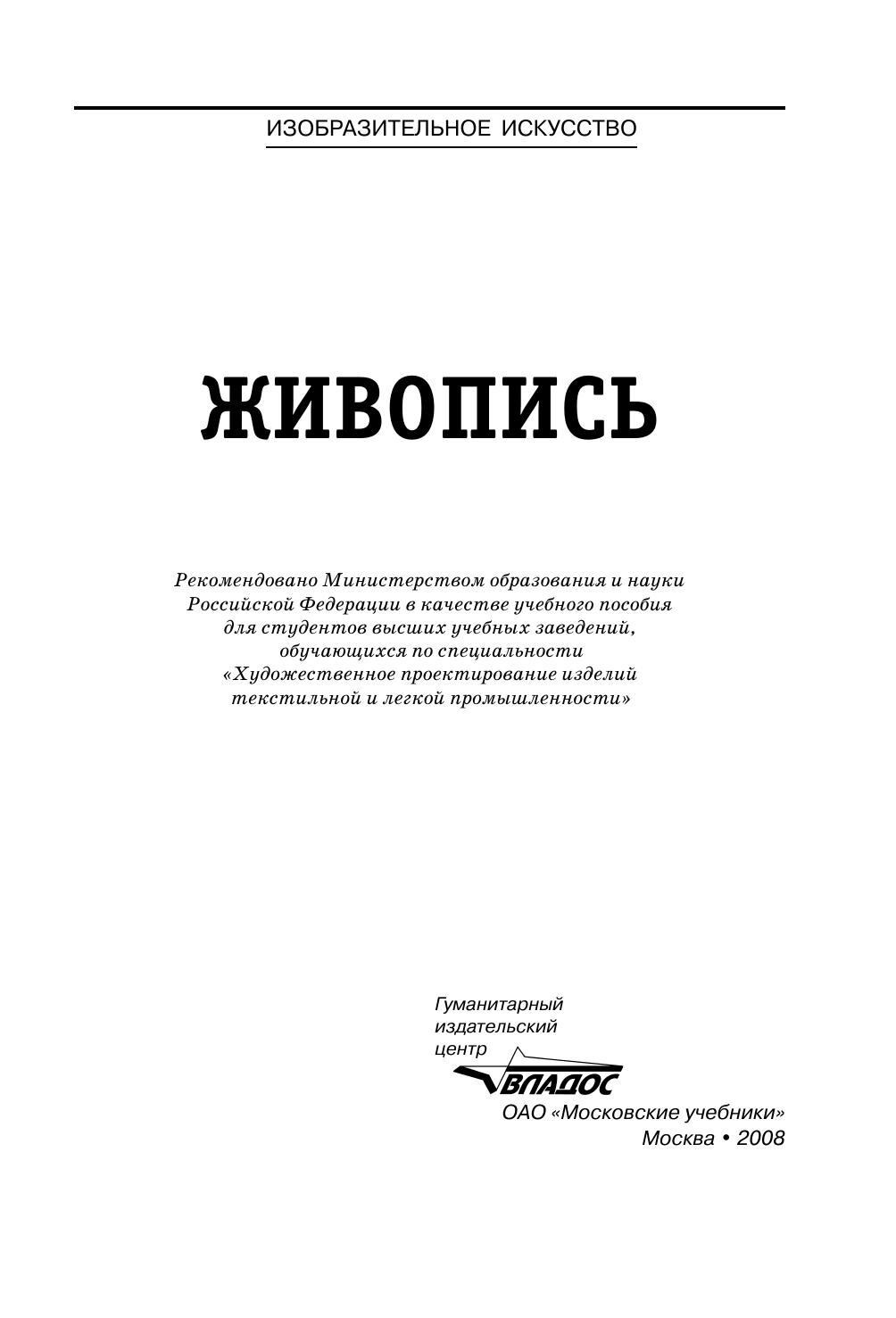 В учебном пособии рассмотрены основы теории, методики и практики живописного изображения применительно к задачам фундаментального обучения студентов, специализирующихся по художественному проектированию изделий текстильной и легкой промышленности. Пособие рекомендовано студентам вузов текстильной и легкой промышленности, может быть полезно учащимся средних учебных заведений по курсу дизайна и декоративно-прикладного искусства.