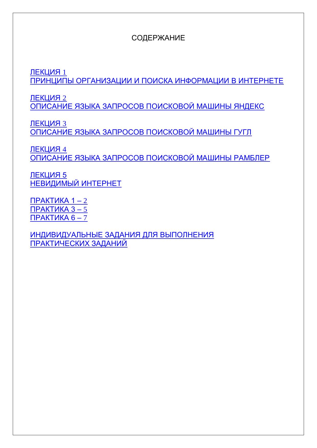 В данном пособии рассматриваются принципы организации и поиска информации в интернете, приводится описание языков запросов поисковой машины Яндекс, Гугл, Рамблер.