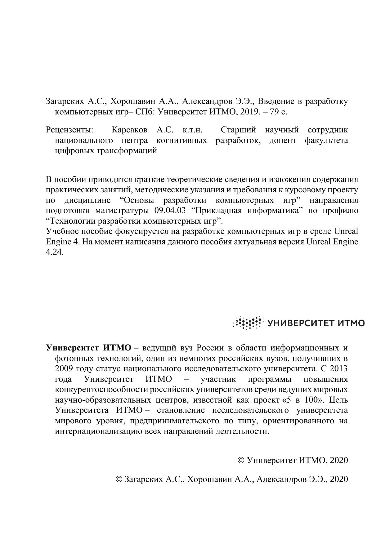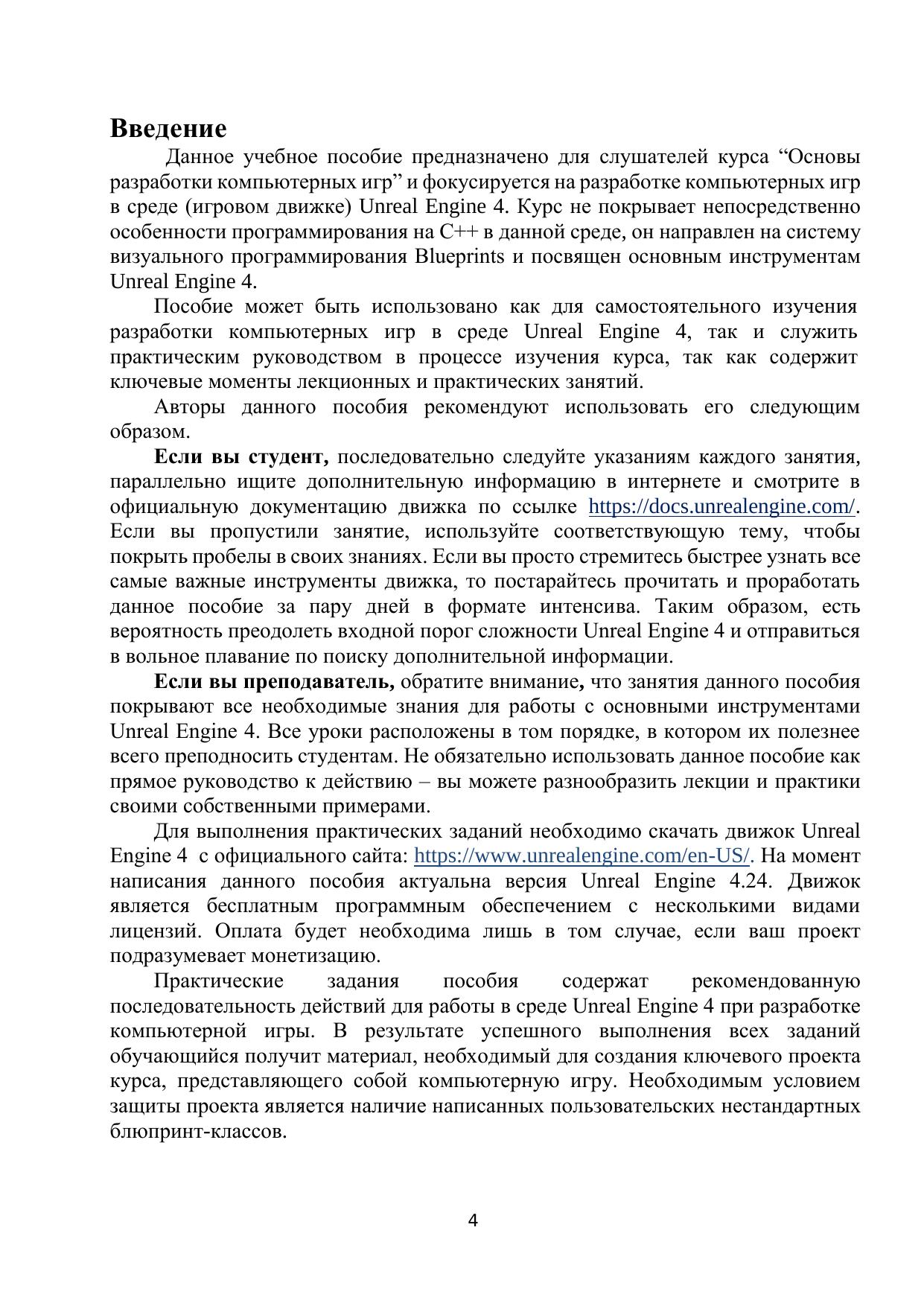 Учебное пособие фокусируется на разработке компьютерных игр в среде Unreal Engine 4. На момент написания данного пособия актуальная версия Unreal Engine 4.24.