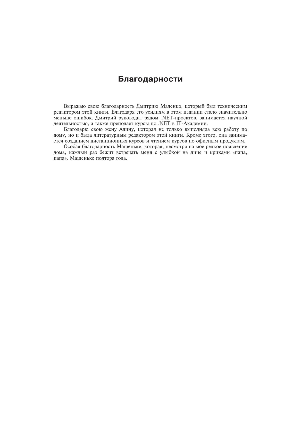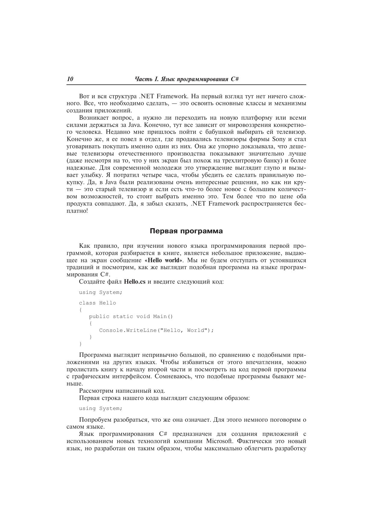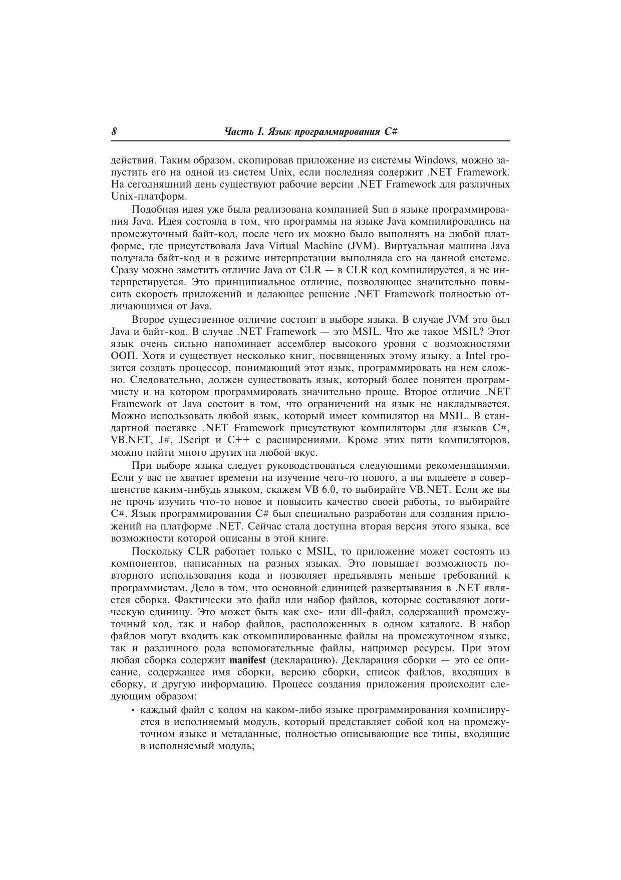 На сегодняшний день .NET Framework настолько опередила конкурирующие платформы, что предполагается платформой «по умолчанию» для разработки любых программных продуктов. Это связано с тем, что компания Microsoft не просто учла ошибки других производителей и пожелания разработчиков, но и внесла много нового в разработку приложений всех типов. .NET Framework реализует множество идей, которые раньше были лишь на бумаге.Компания Microsoft, как разработчик платформы .NET, постоянно совершенствует и расширяет возможности этой платформы. В 2005 году появится очередной релиз — .NET Framework 2.0. Совместно с SQL Server 2005 и Visual Studio .NET 2005 он станет мощным инструментом для разработки приложений. Купив эту книгу, вы будете готовы к появлению новой версии платформы, так как тут идет речь именно о .NET Framework 2.0.Материал книги позволит освоить основы программирования на языке С# и приступить к профессиональной разработке Windows-приложений. Вы сможете убедиться, что разрабатывать приложения с использованием .NET Framework так же просто, как и Windows-приложения с использованием таких продуктов, как Visual Basic или Delphi.