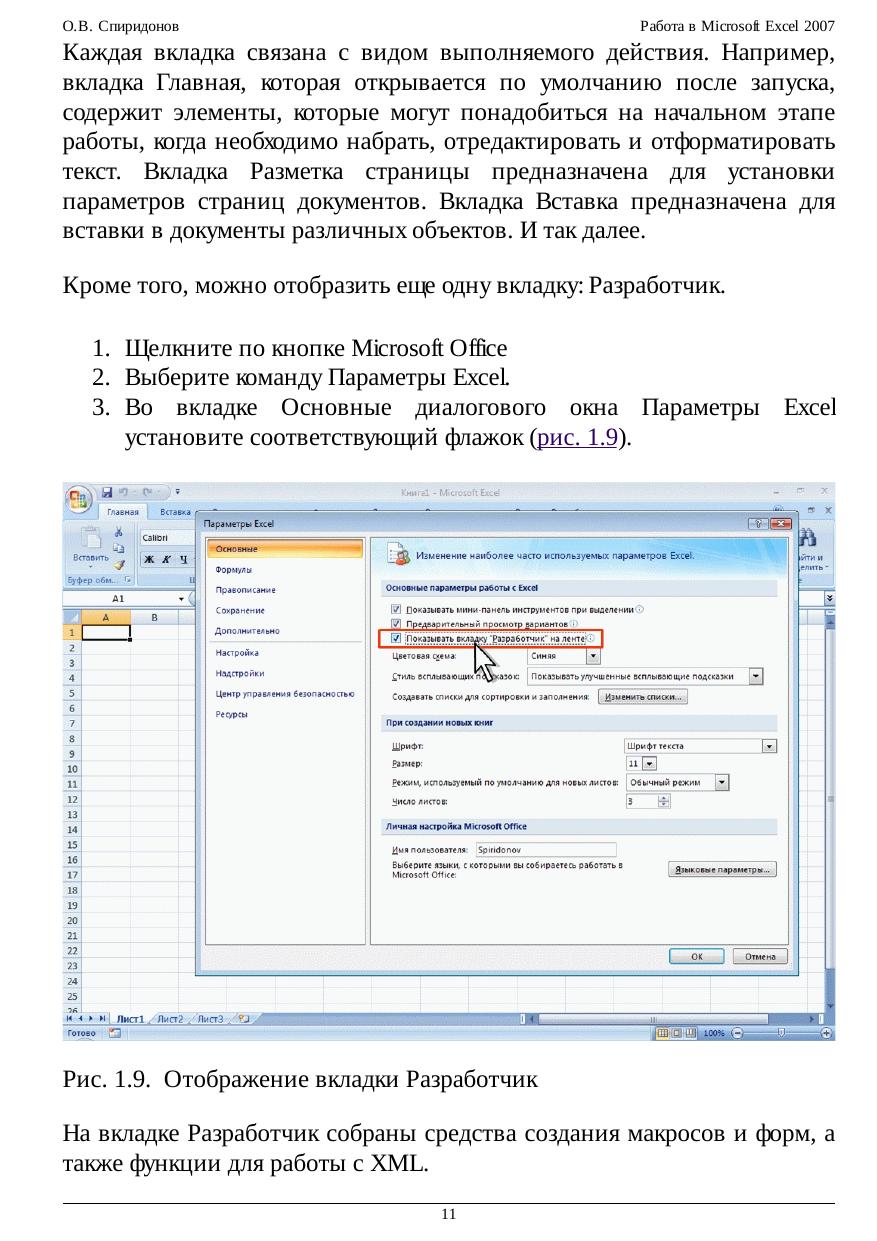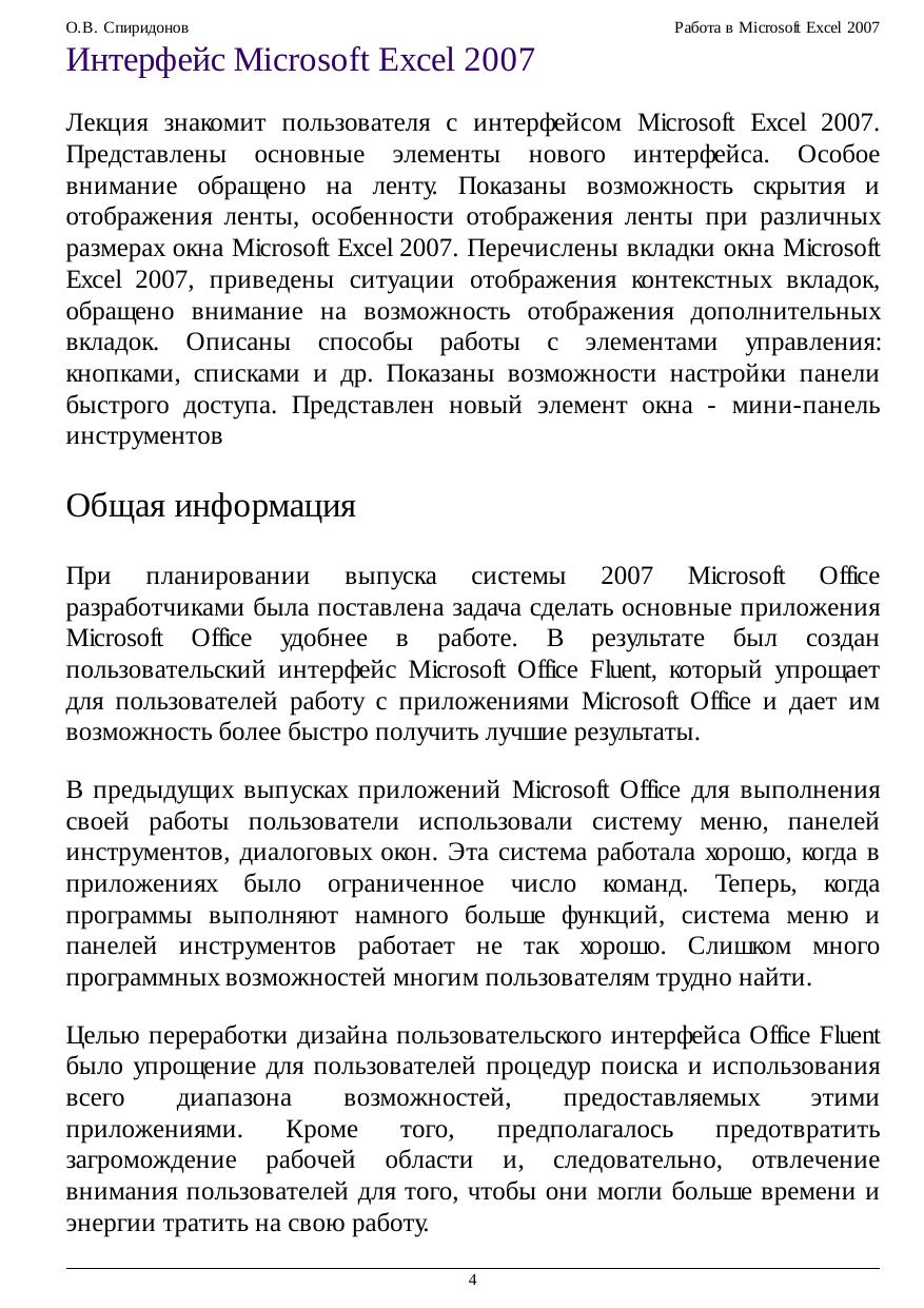 Работа в Microsoft Excel 2007