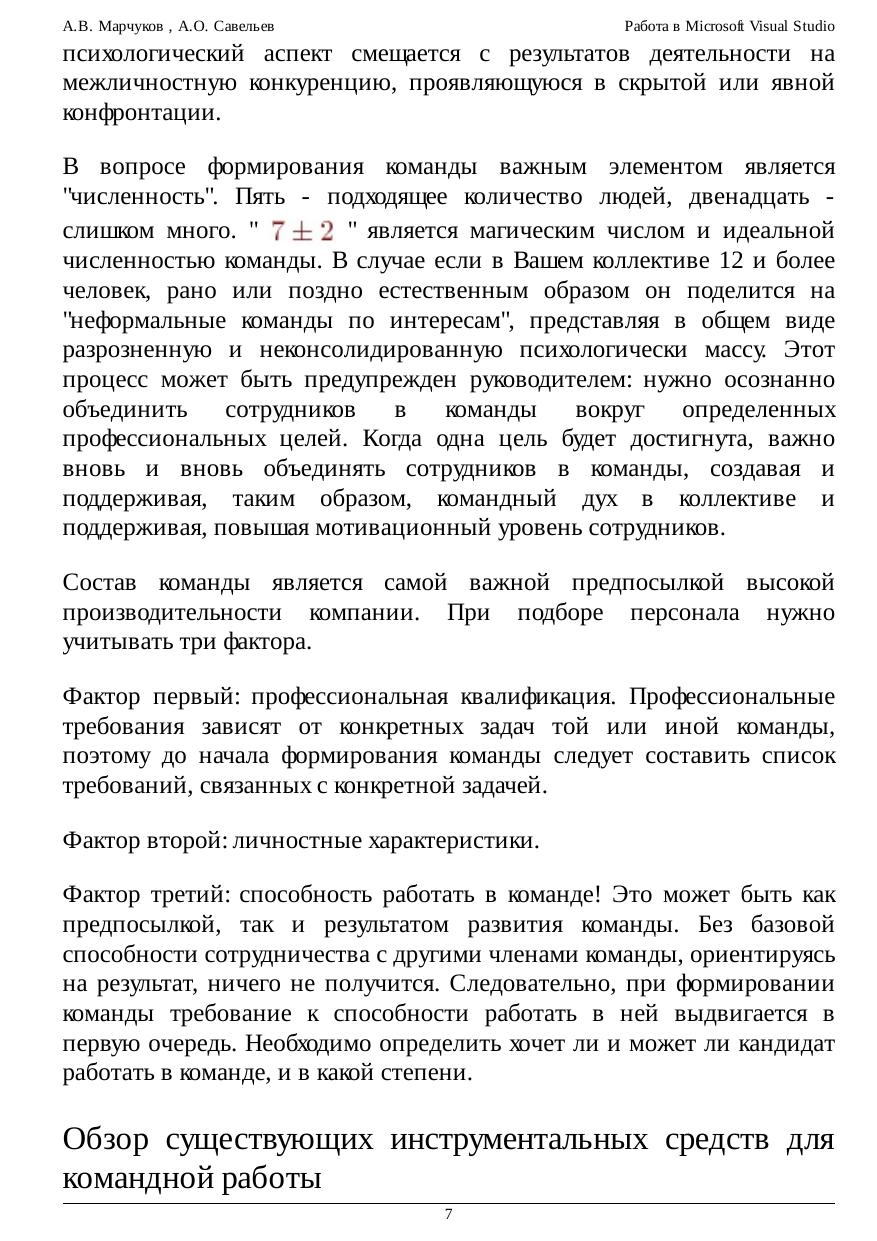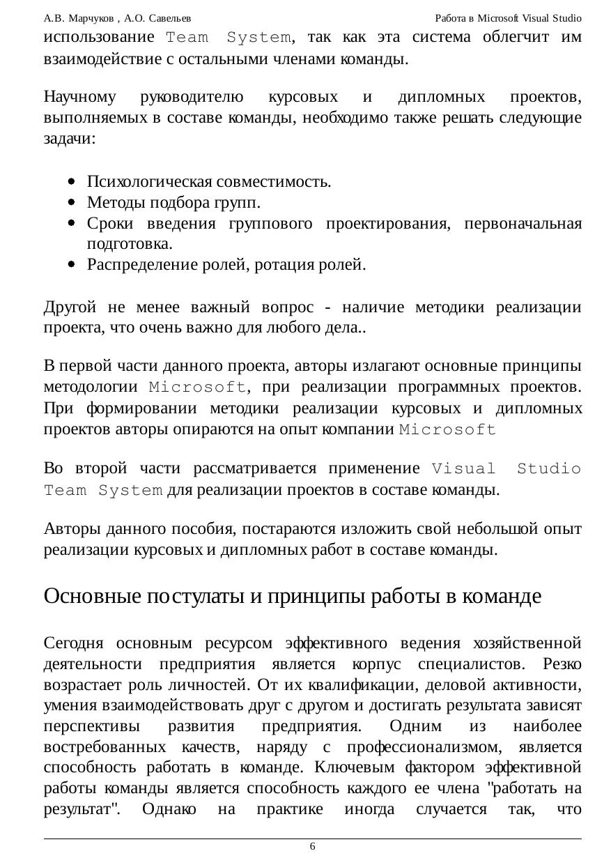 Курс предназначен для прочтения студентам и магистрам, обучающихся по специальности "Математическое и программное обеспечение вычислительных машин, комплексов и компьютерных сетей", "Прикладная информатика в экономике" и родственные им. По мере изучения курса студентам предлагается изучить вопросы создания программного обеспечения от постановки технического задания до реализации реального проекта в составе команды. Описываются инструментальные средства разработки программного обеспечения в составе команды, методика реализации тестовых проектов, методы подбора команд.